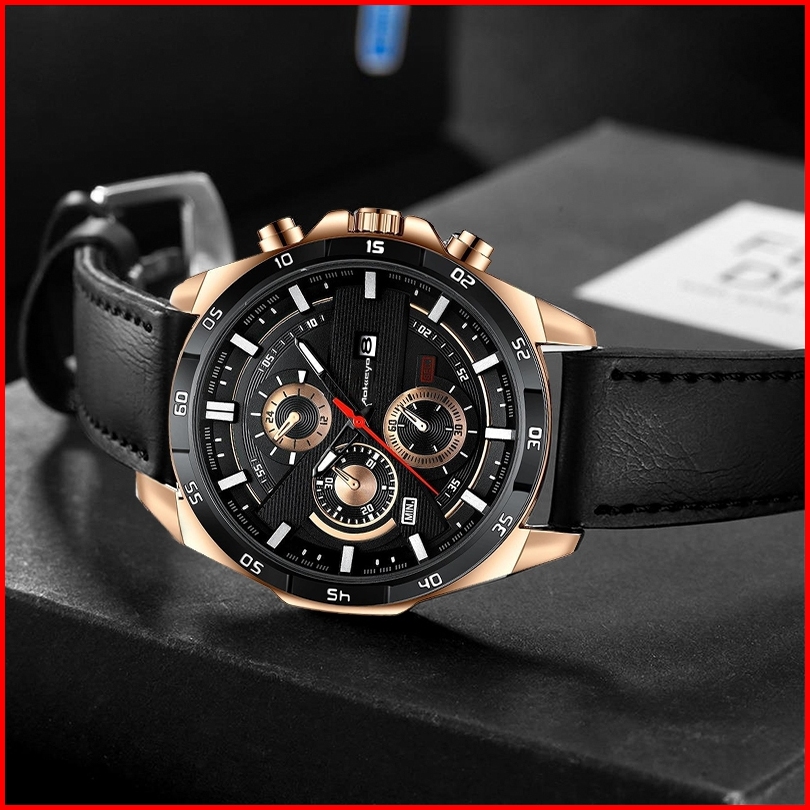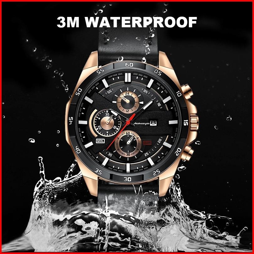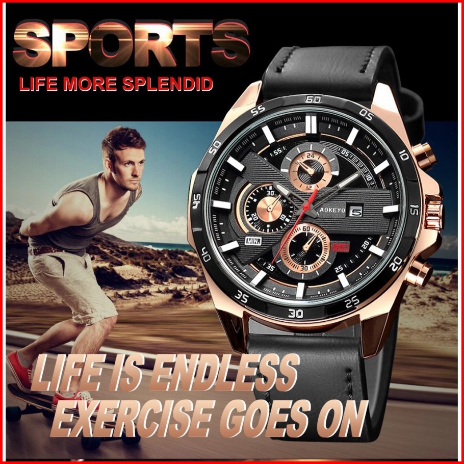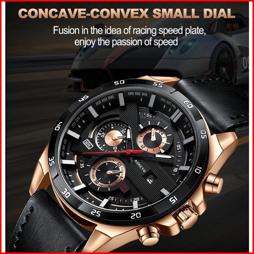 Aokeyo 216 Jam Tangan Pria Kulit Original Tahan Air Fashion Business Auto Date Analog Jam Tangan Cowokfree Box Kartu Gar