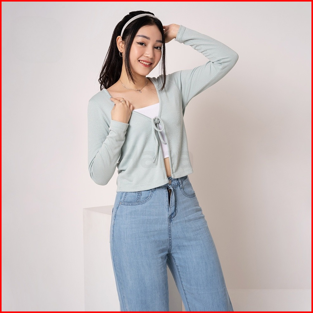 Cardigan Rajut Crop Tali Wanita Lengan Panjang Korean Style
