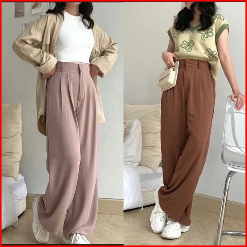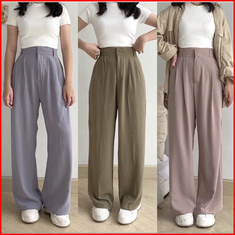 Highwaist Loose Kulot Cringkle Airflow Loose Pants Kekinian