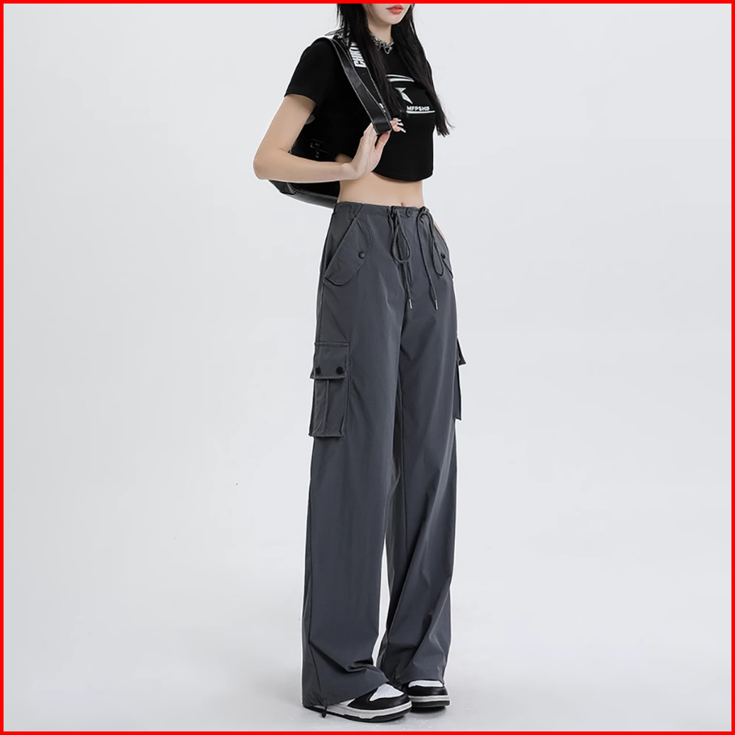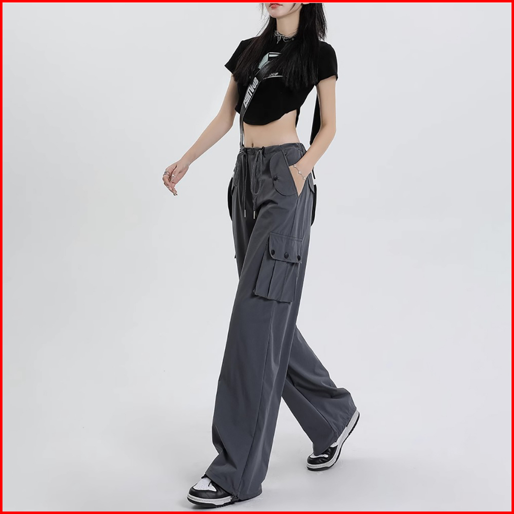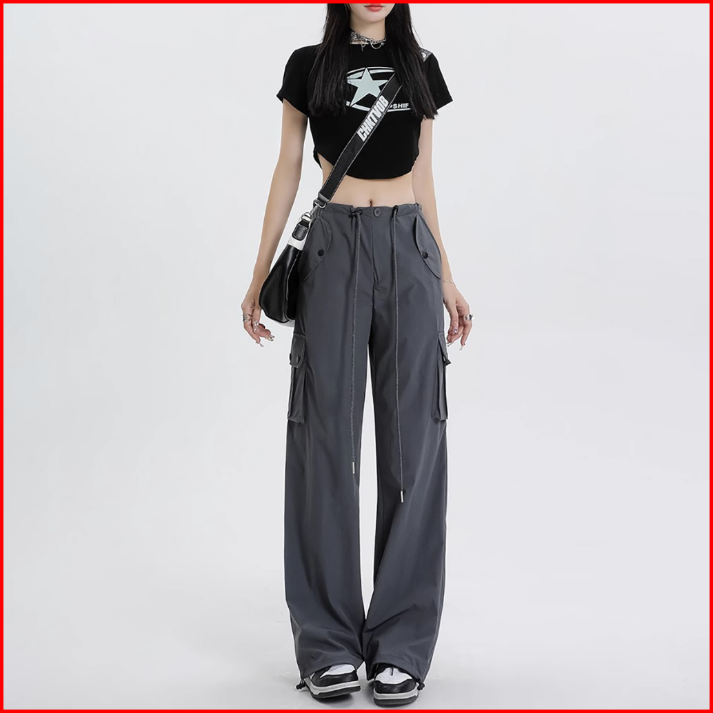 Celana Kargo Serut - Highwaist Loose Cargo - Celana Kargo Wanita - Baggy Pants