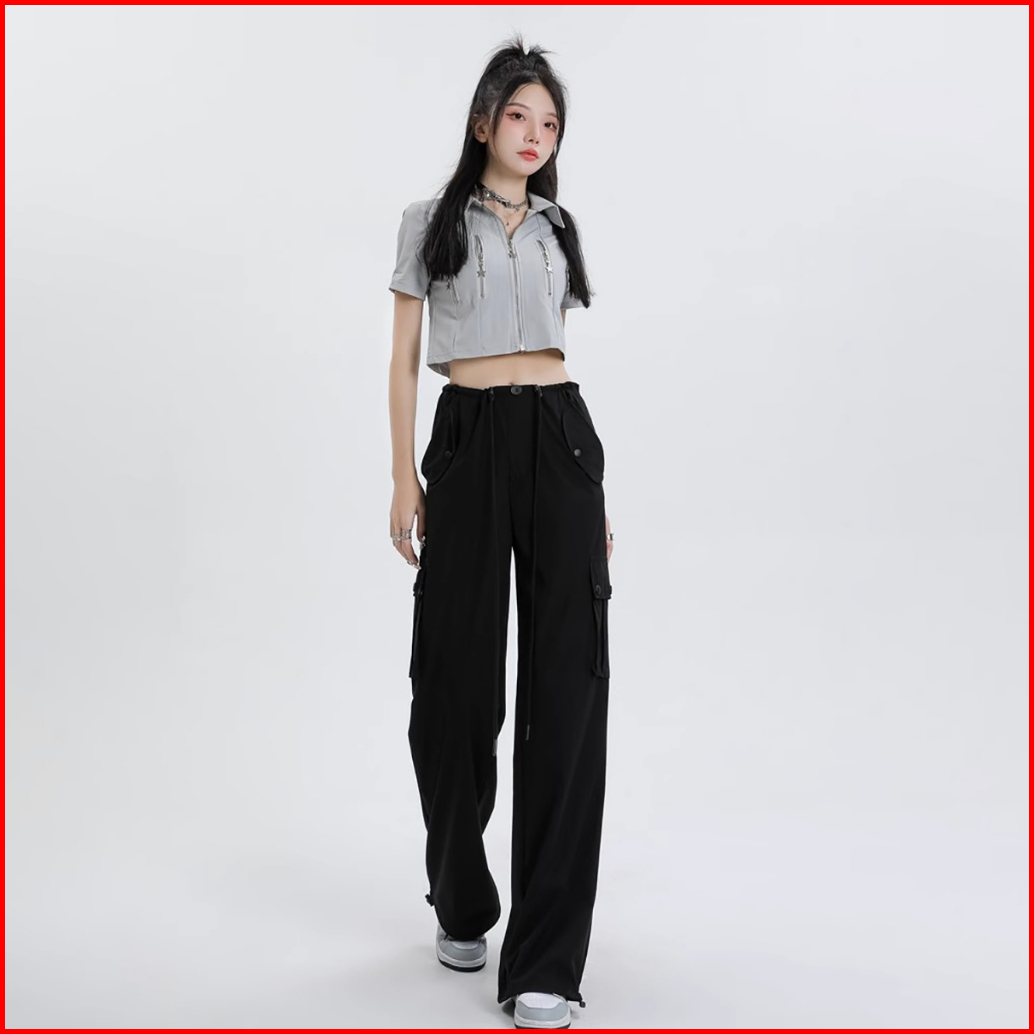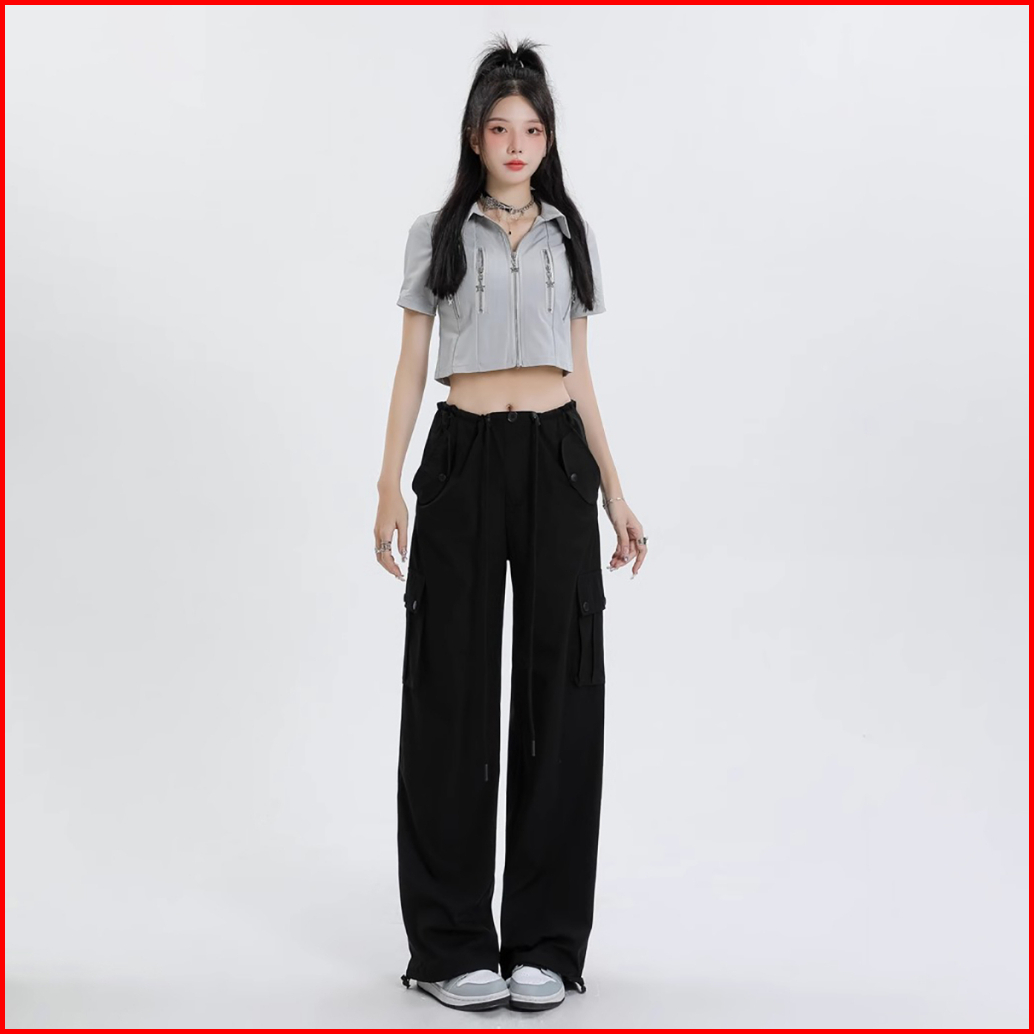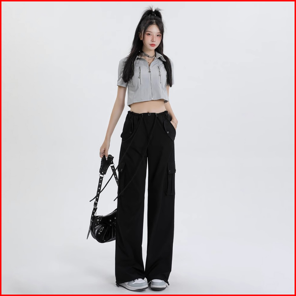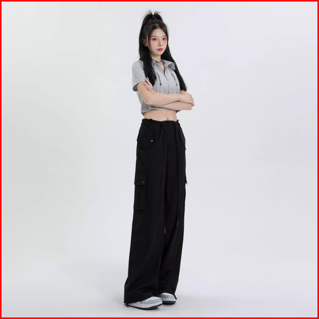 Celana Kargo Serut - Highwaist Loose Cargo - Celana Kargo Wanita - Baggy Pants