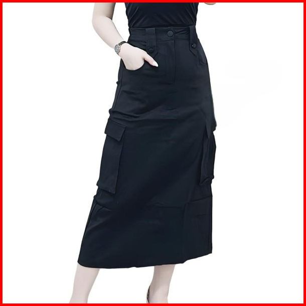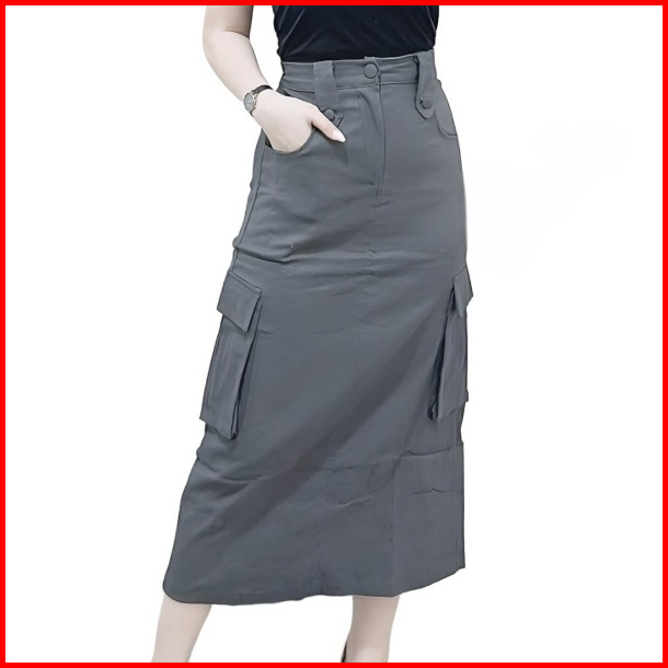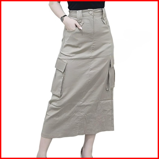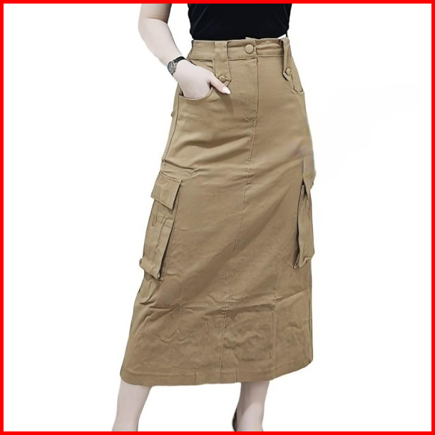 Emweha Rok Crago Wanita Katun Drill Belah Belakang Korean Style Skirt Ines