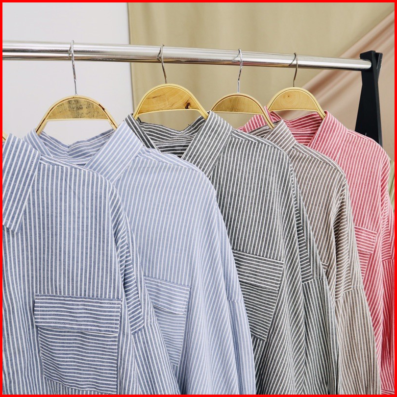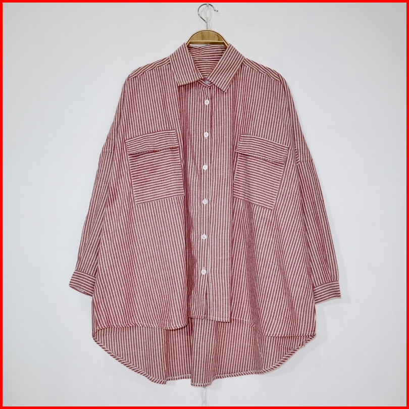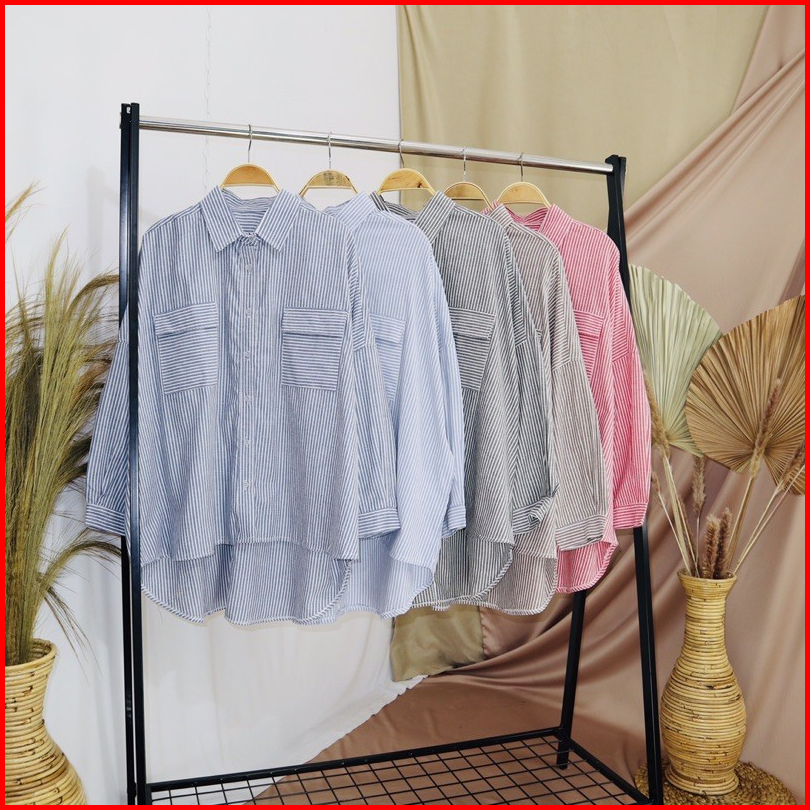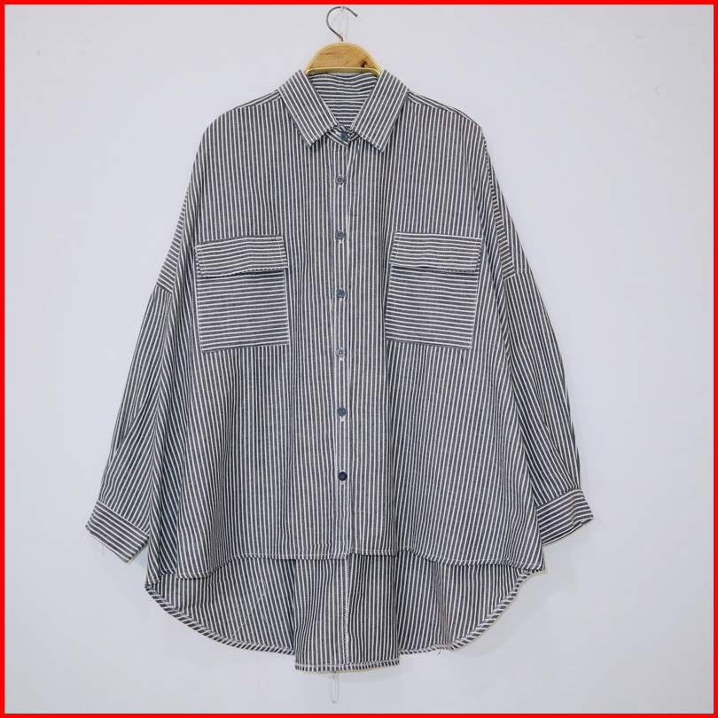Emweha Kemeja Wanita Oversize Pocket Salur Khanza
