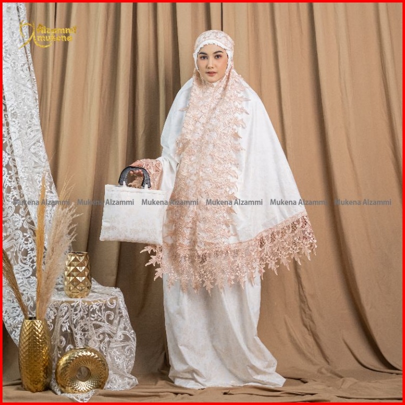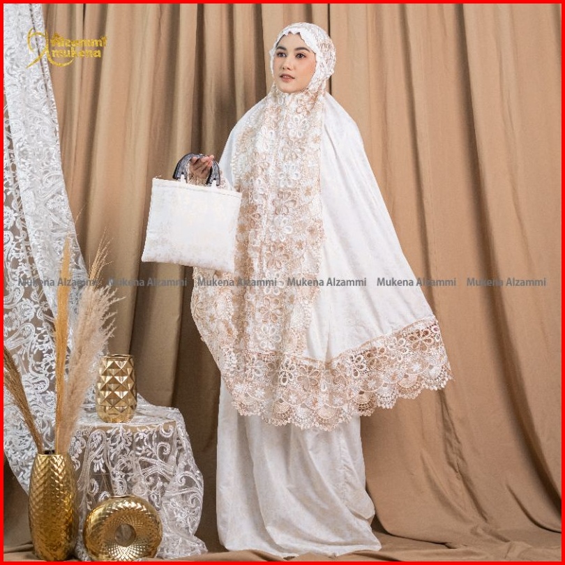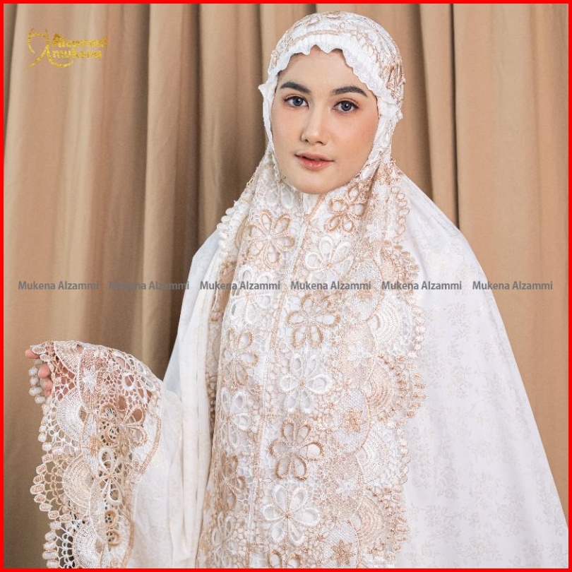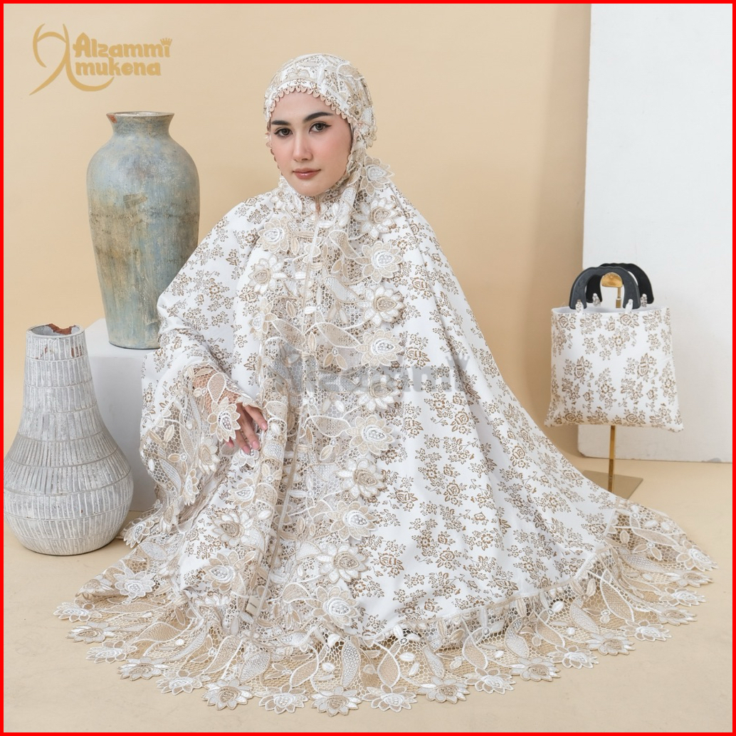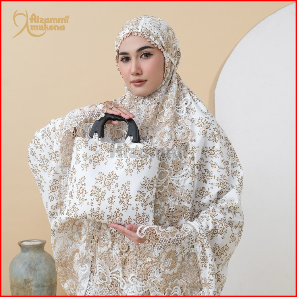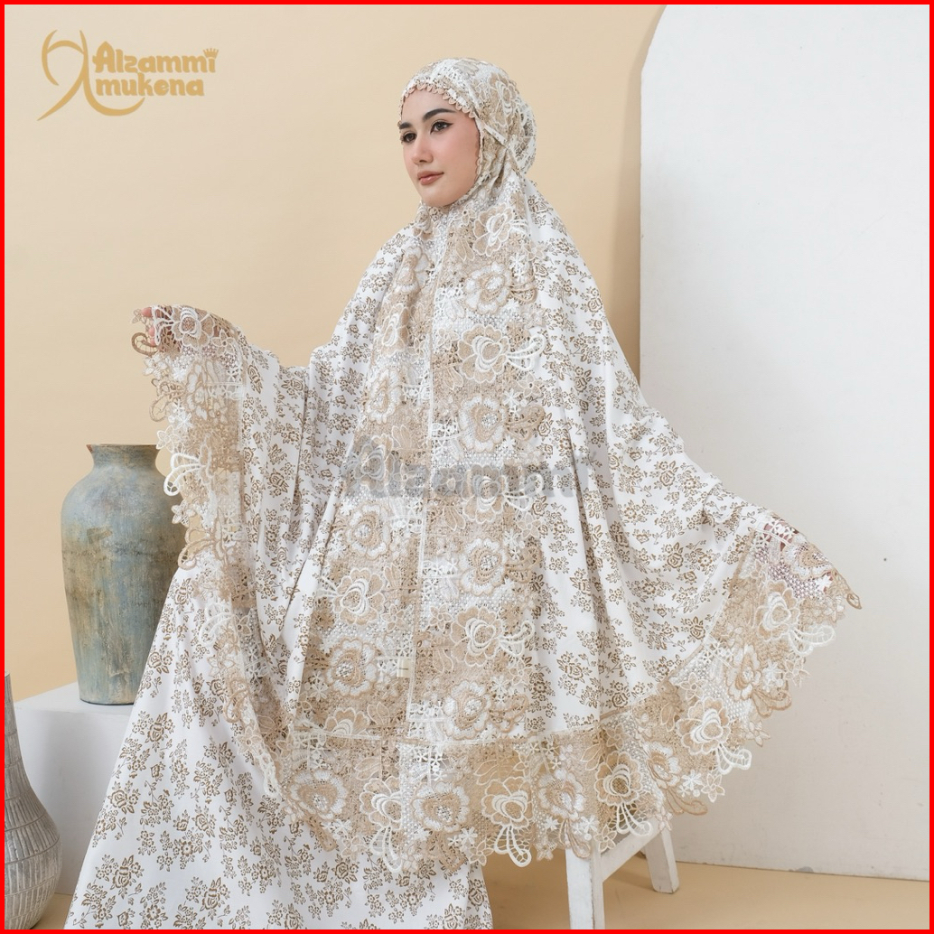 Mukena Dewasa Ameera Bahan Katun Foil Renda Mewah Full