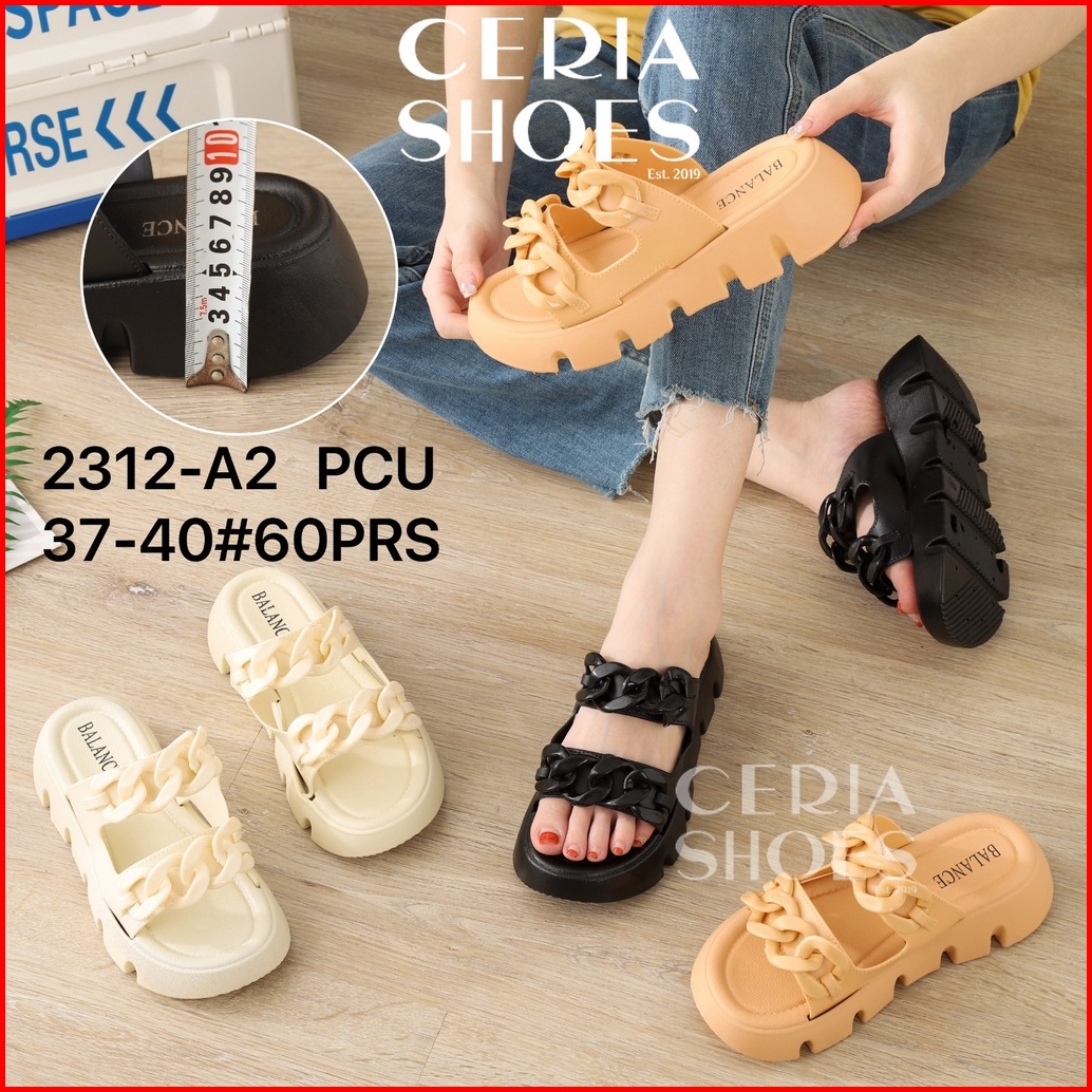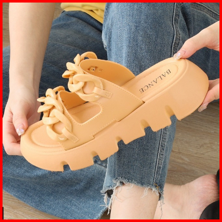 Sandal Slop Wanita Korean Rubber Pvc Tebal Bahan Empuk Elastis Non Slip Sole Balance 2312-a2