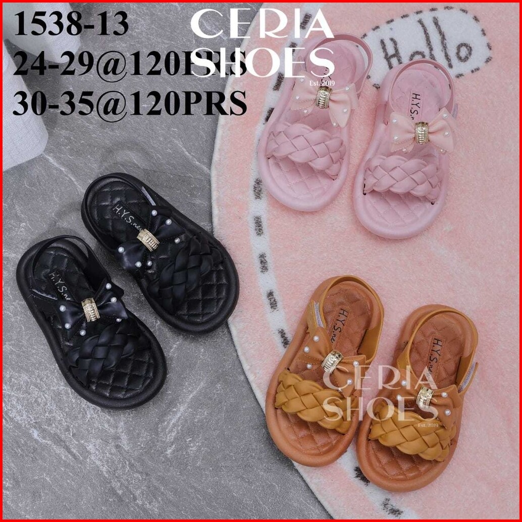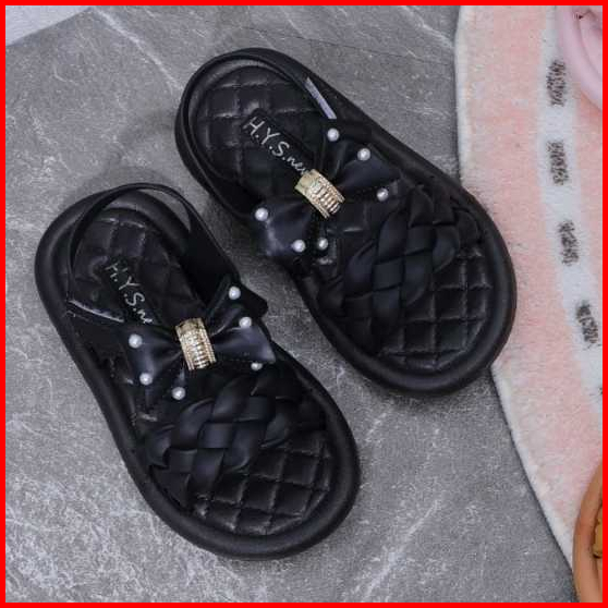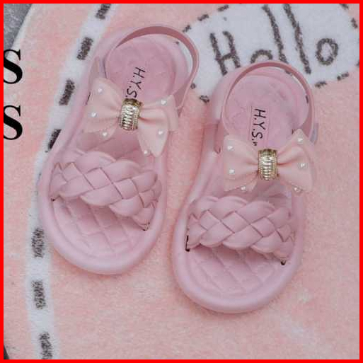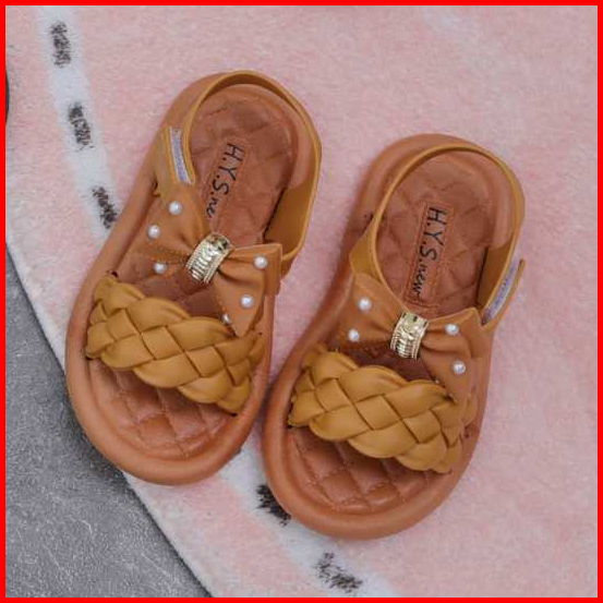 Sandal Anak Perempuan Slop Tali Belakang Motif Kepang Pita Manik Bahan Karet Import Sol Lentur Anti Slip Hys 1538
