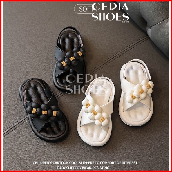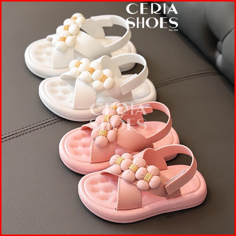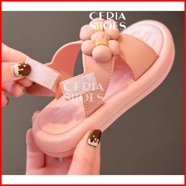 Pvc Sandal Tali Jelly Anak Perempuan Rubber Jelly Empuk Elastis Motif Bunga Bahan Karet Tebal Non-slip Anti Kaki Lecet S