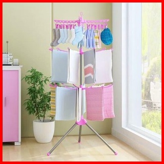 Jemuran Serbaguna Menara 3 Tingkat 16jari-jari 24jepitan Baju Rak Handuk Serbaguna
