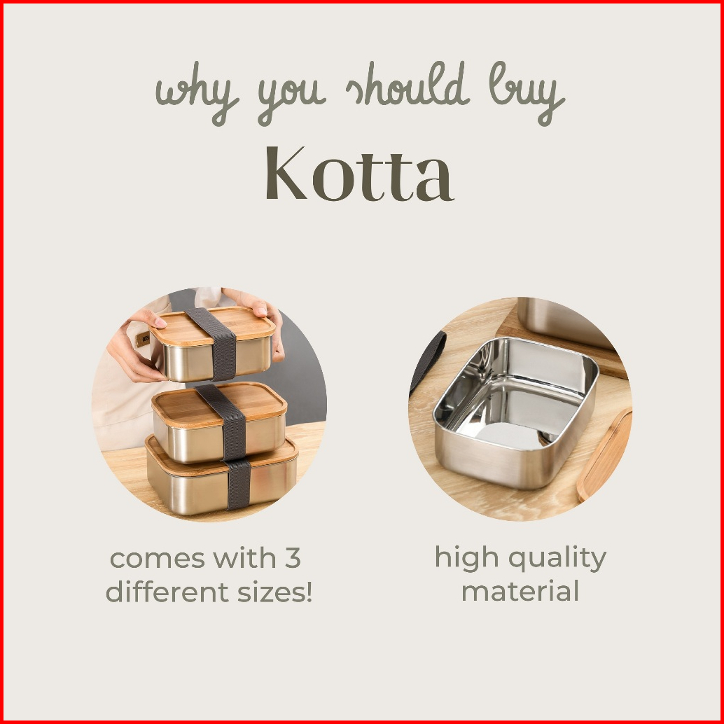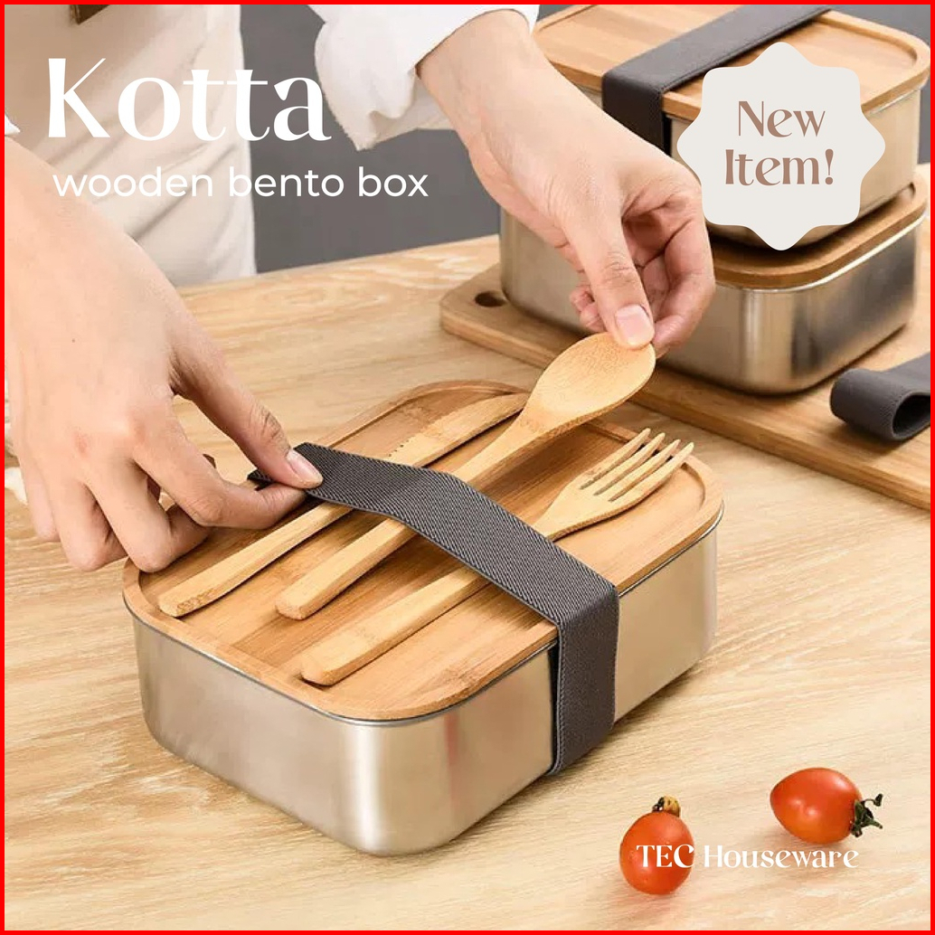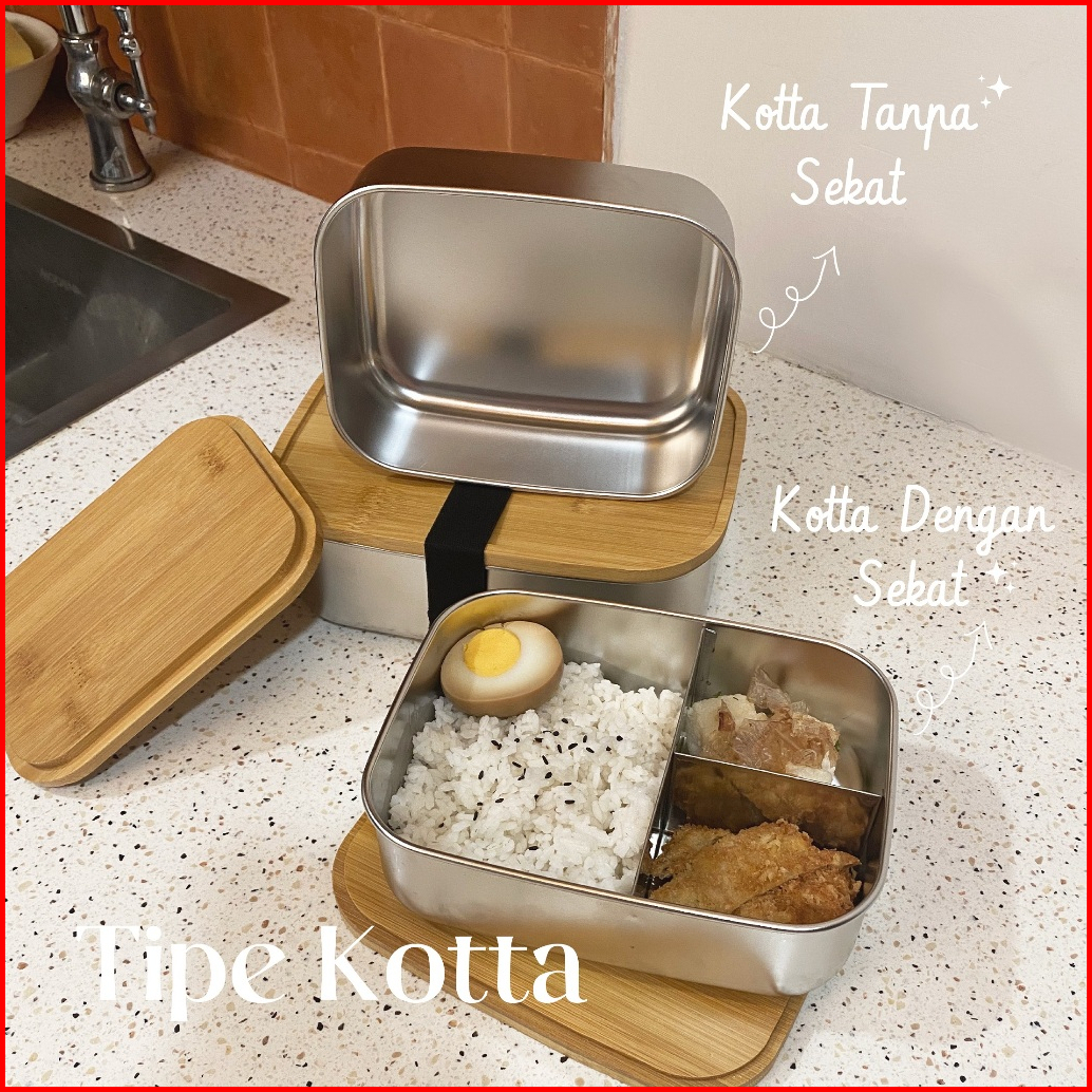 Kotak Makan Anak Sekat 3 Tec Kotta Bento Box Kotak Makan Stainless Steel 304 Berkualitas Tutup Kayu Kotak Penyimpanan Ma