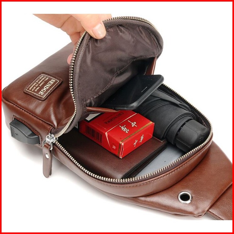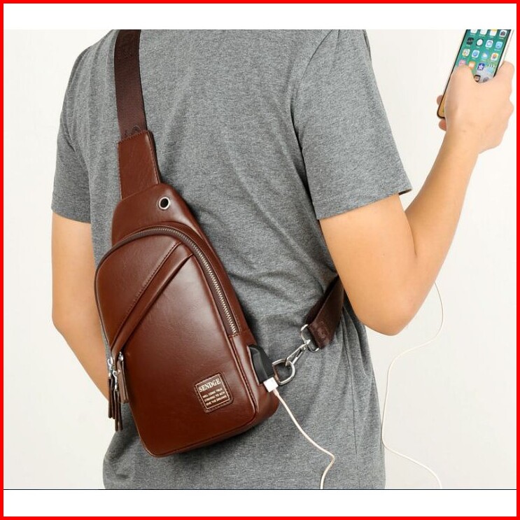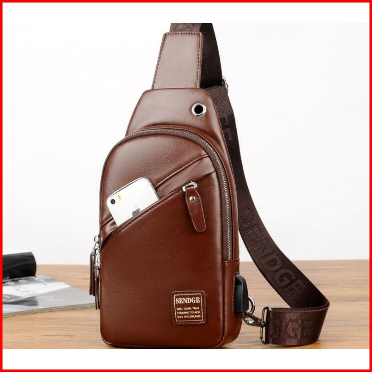 Sendge Tas Selempang Kulit Pria Import Usb Port Slempang