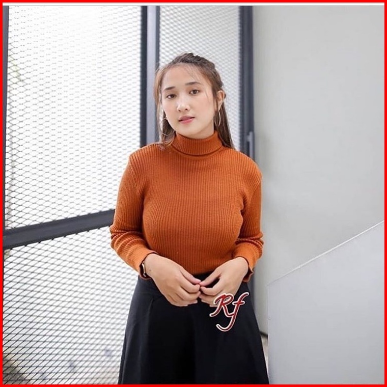 Kaos Turtleneck Pria Wanita Leher Tinggi Rib Premium Turtleneck Tangan Panjang Rajut Wanita Pretty