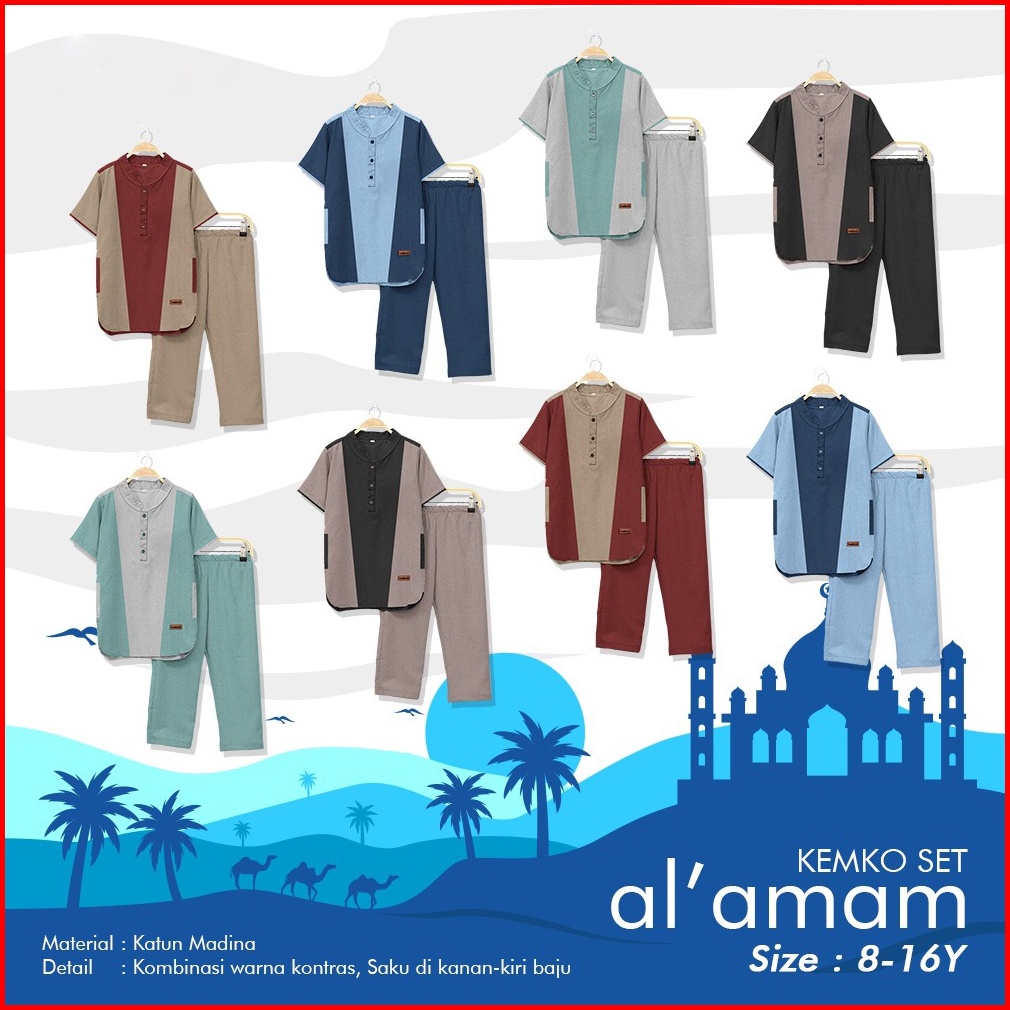 Kemko Setelan Koko Anak Laki Laki Al Amam Lengan Pendek Koko Setelan Anak Remaja Usia 8-16 Tahun