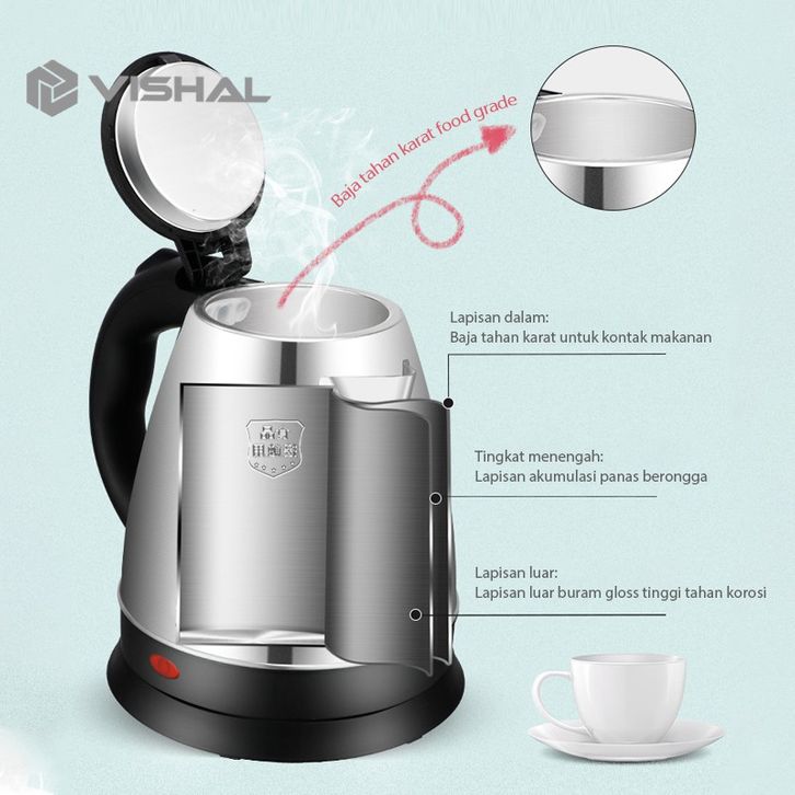 mall inline badgeVISHAL Teko Listrik 2L / Teko Elektrik / Pemanas Air Pembuat Kopi Teh VS-1801