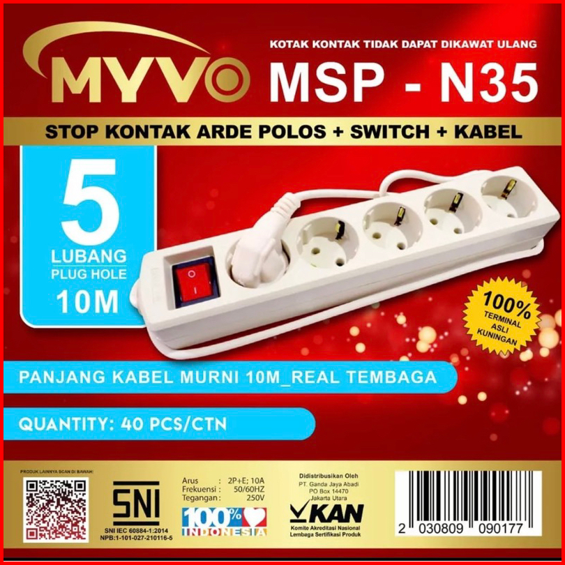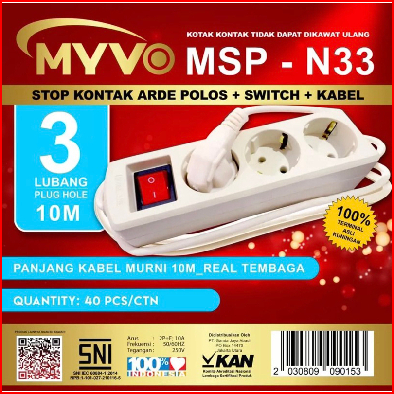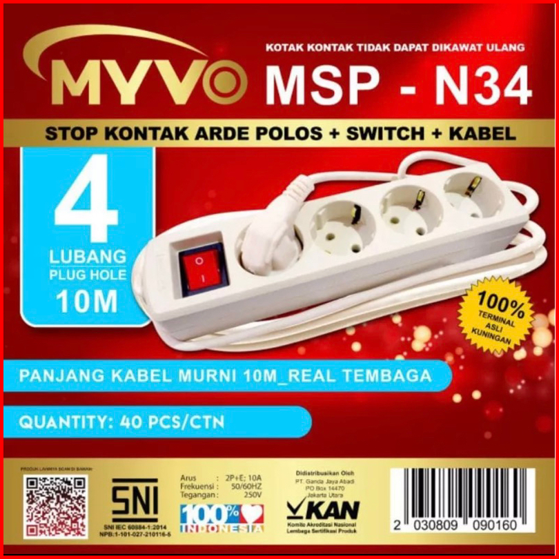 Stop Kontak 10 Meter Myvo 3 Lubang 4 Lubang 5 Lubang