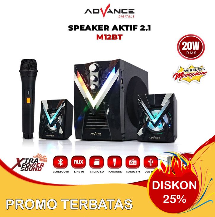 ADVANCE M12BT SPEAKER STEREO BLUETOOTH XTRA BASS SUBWOOFER GARANSI RESMI 1 TAHUN BISA KAROKE GRATIS MIC