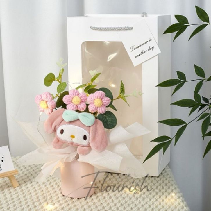 Buket boneka lucu lampu led hadiah ultah natal pacar wisuda buket bunga kuromi cinnamon sanrio