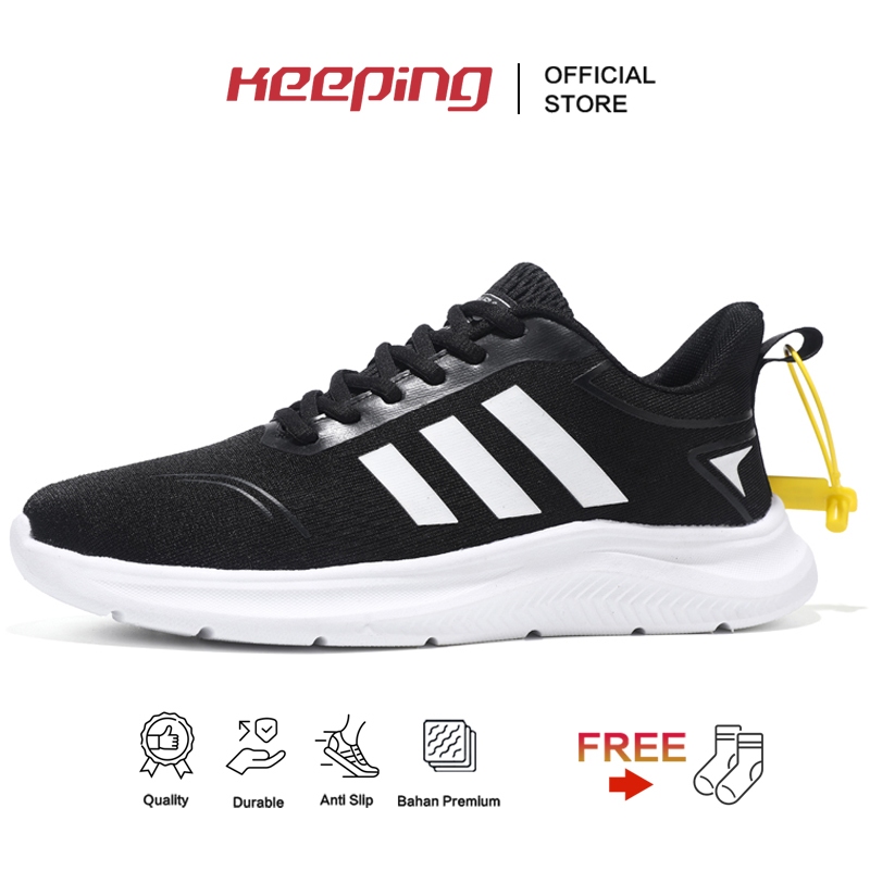 Keeping Sepatu Sneakers Pria Hitam Sepatu Ringan Olahraga Lari Cowok Original Sepatu Casual Joging Outdoor Terbaru