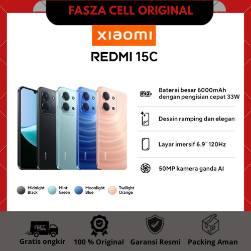 Handphone Xiaomi Redmi 15C (6GB/128GB) (8GB/256GB) | Baterai besar 6000mAh dengan pengisisan daya 33W | Desain ramping d