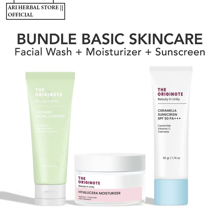 PAKET SKINCARE THE ORIGINOTE BASIC SKIN FACIAL WASH + MOISTURIZER + SUNSCREEN PERAWATAN WAJAH MENCERAHKAN