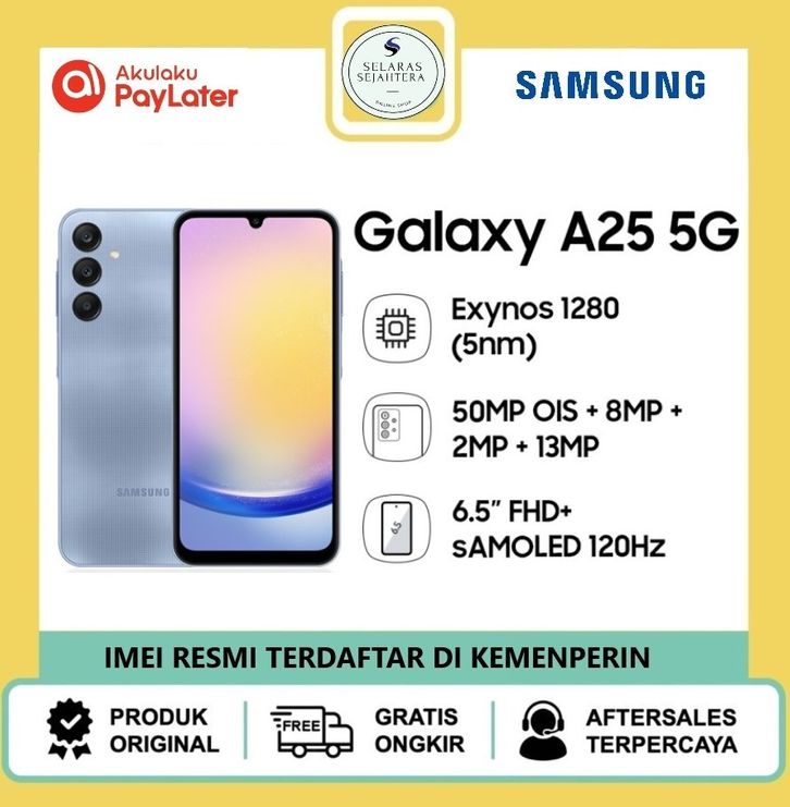 Samsung Galaxy A25 5G 8/256GB - ( Super AMOLED 120Hz-OIS Digital Zoom up to 10x ) Garansi