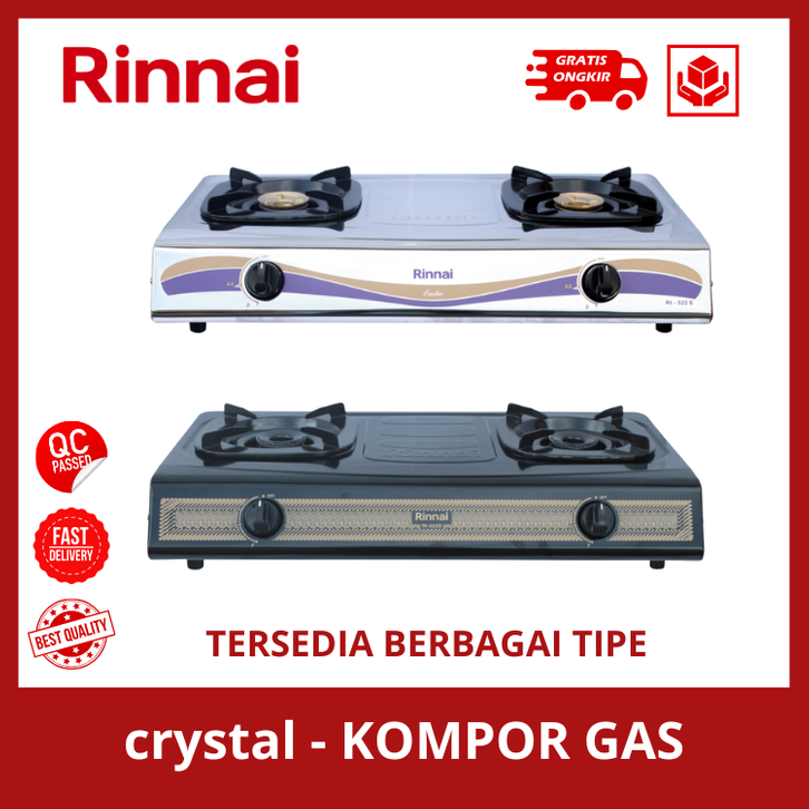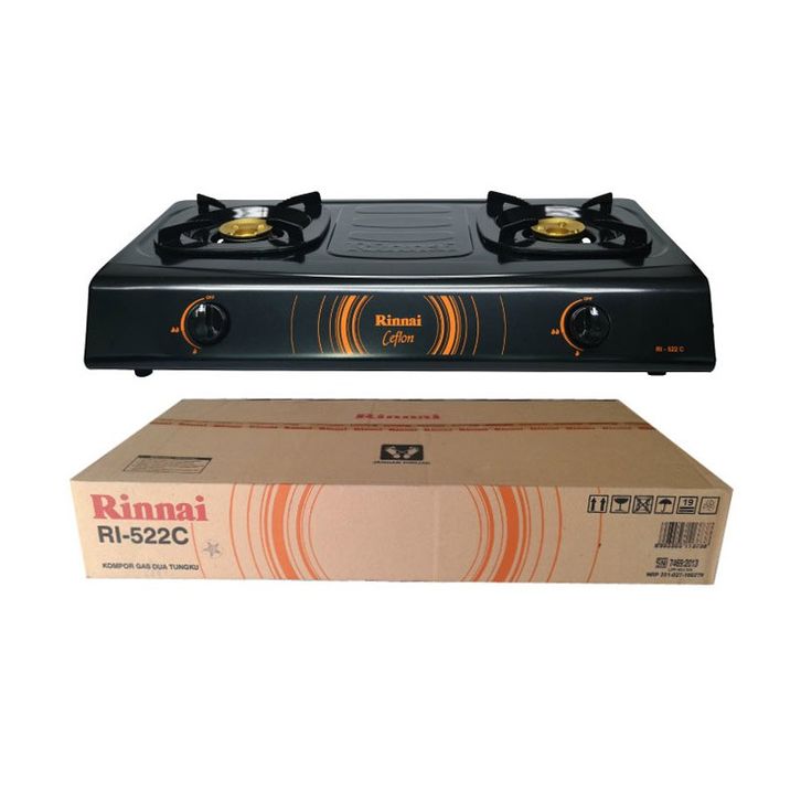 KOMPOR GAS RINNAI 2 TUNGKU RI 522 C E A S CE AT RI 522C 522E 522A 522S 522CE 522AT STAINLESS STEEL API BESAR MURAH