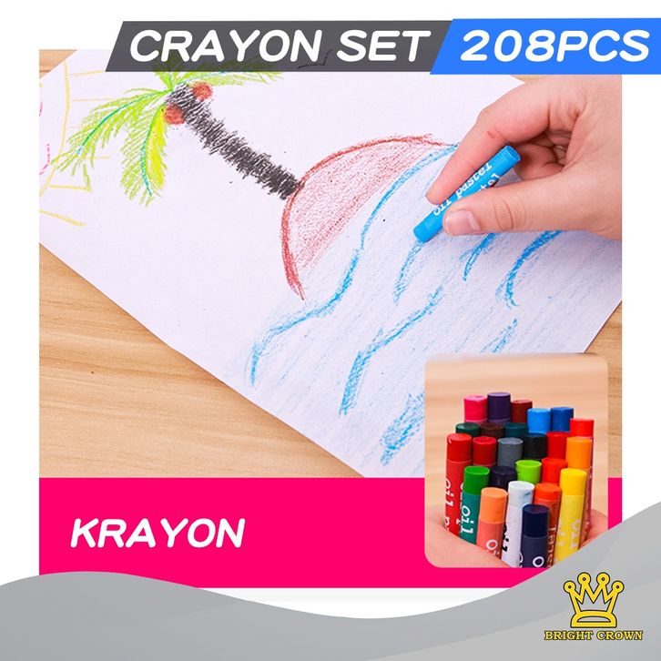 Pensil Warna Crayon Set Isi 208pcs & 150pcs / Crayon set Macam Warna Cocok Menggambar Mewarnai