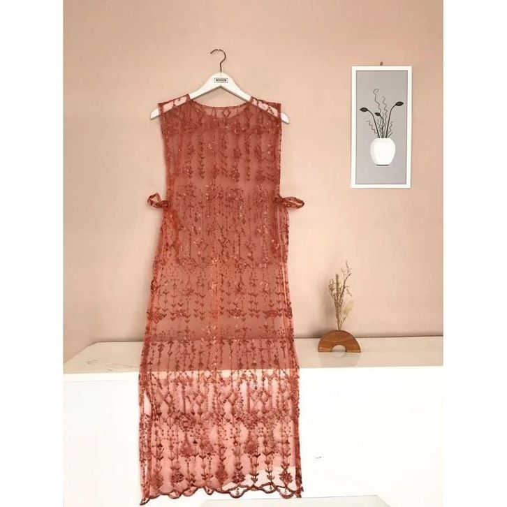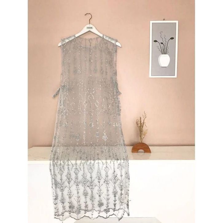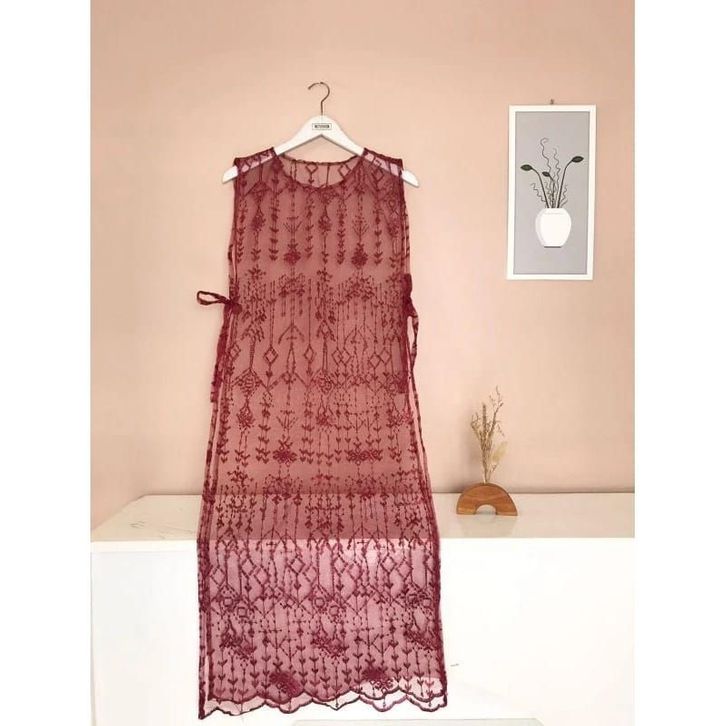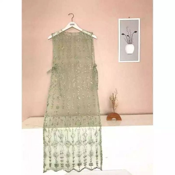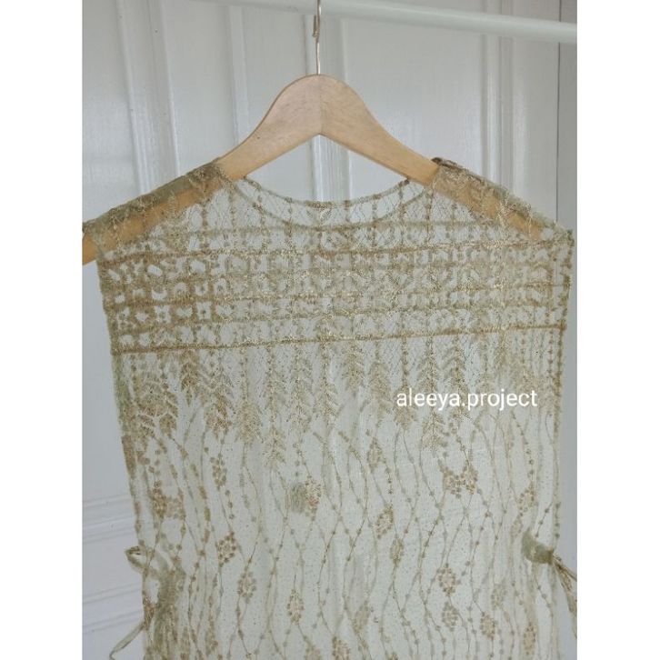 Cardigan long vest tule brukat premium outer rompi brukat motif Random - Brukat Cardigan Outer Vest Rompi Kebaya Wanita