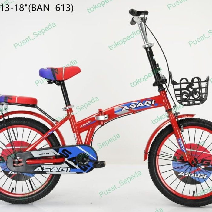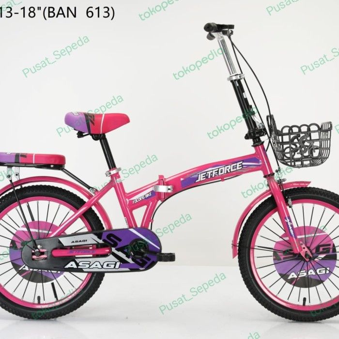 Sepeda lipat anak ukuran 18"inch 5 sd 8 tahun ada roda bantu - Merah Muda Sepeda Anak Roda Tiga 3
