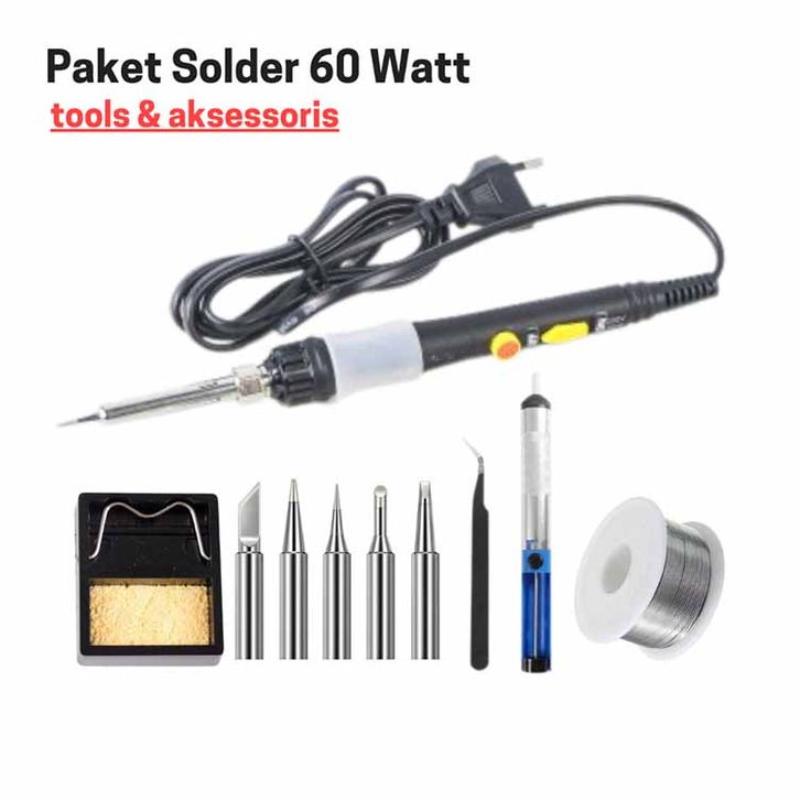 Solder Listrik 60W Watt Adjustable Temperature Cepat Panas Black OLOEY 6 in 1 Termurah