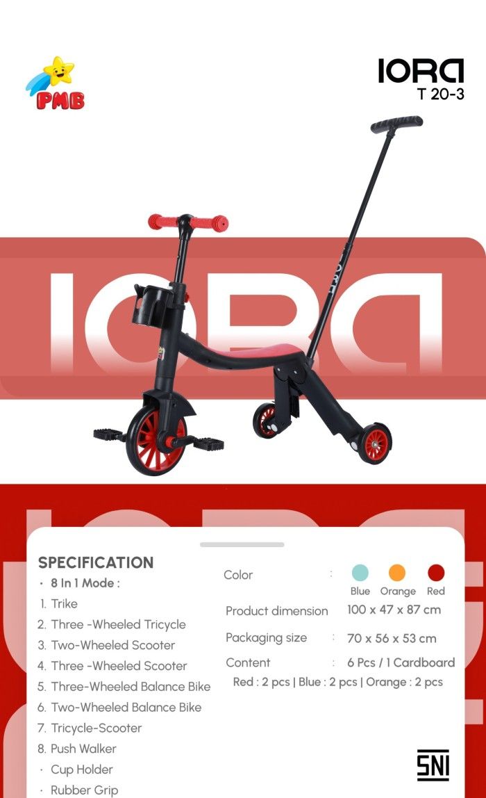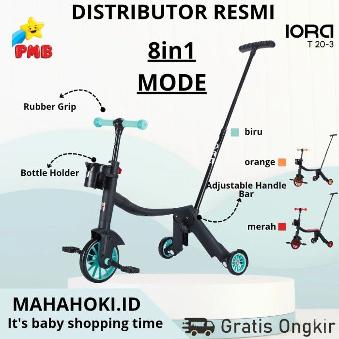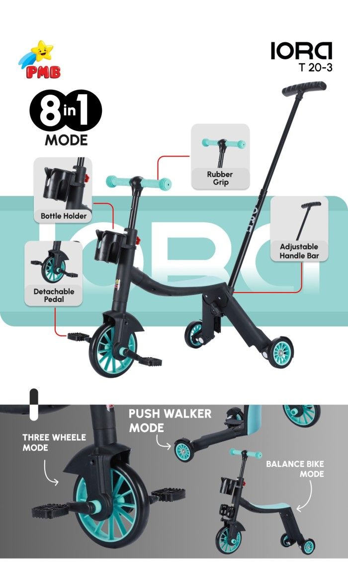 SEPEDA RODA TIGA 8 IN 1 PMB IORA T 20-3 T20-3 SCOOTER ANAK - TOSCA Sepeda Anak Roda Tiga 3