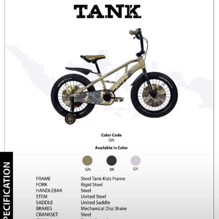 Sepeda Anak Laki 18 Inch United Tank 6 - 9 Tahun Discbrake Sepeda Anak Roda Tiga 3