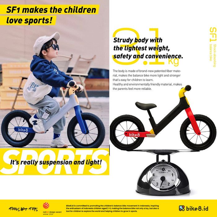 BIKE8 SF-1 PRO Balance Bike / Push Bike - Sepeda Anak - CHEESE WHITE Sepeda Anak Roda Tiga 3
