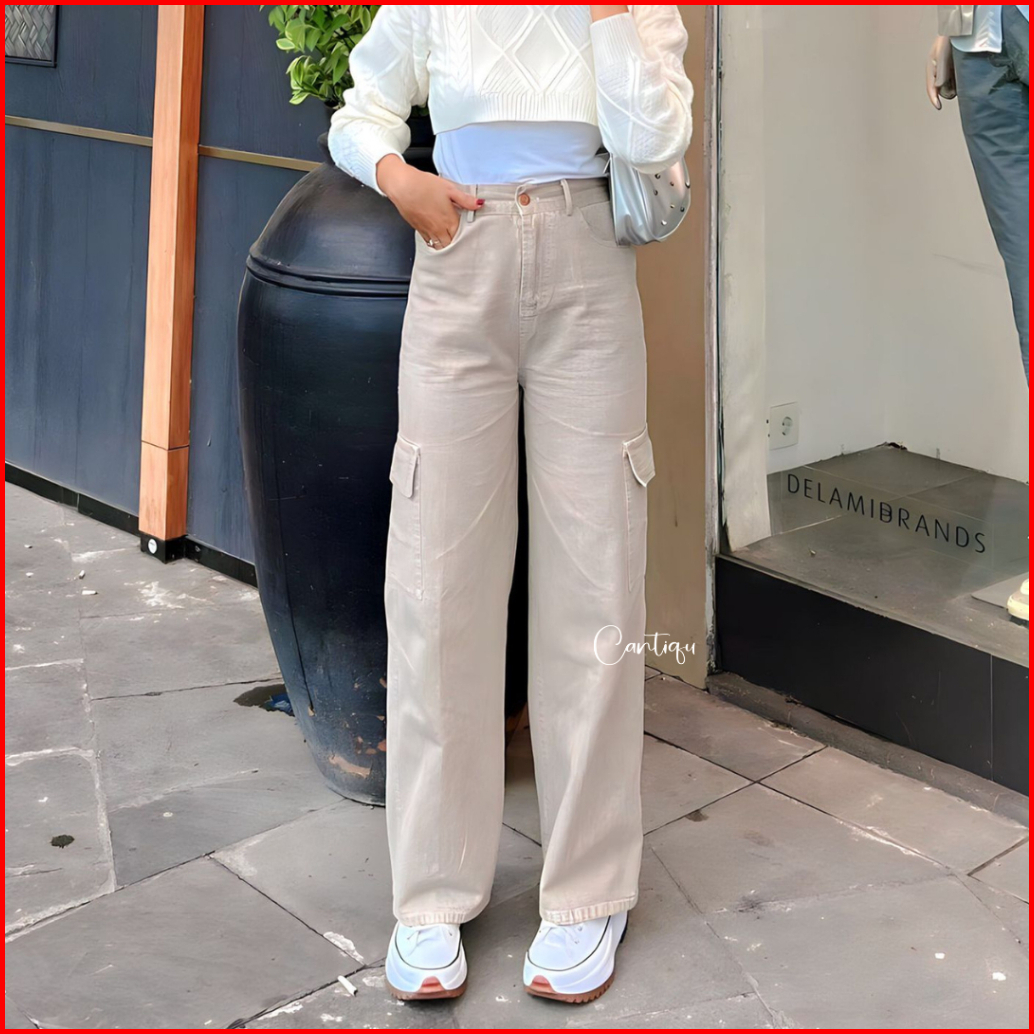 Cantiqu - Jenny Cargo Pants Celana Kargo Korean Style
