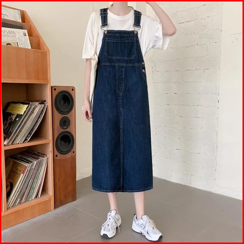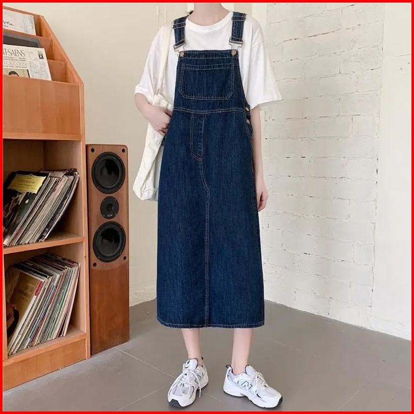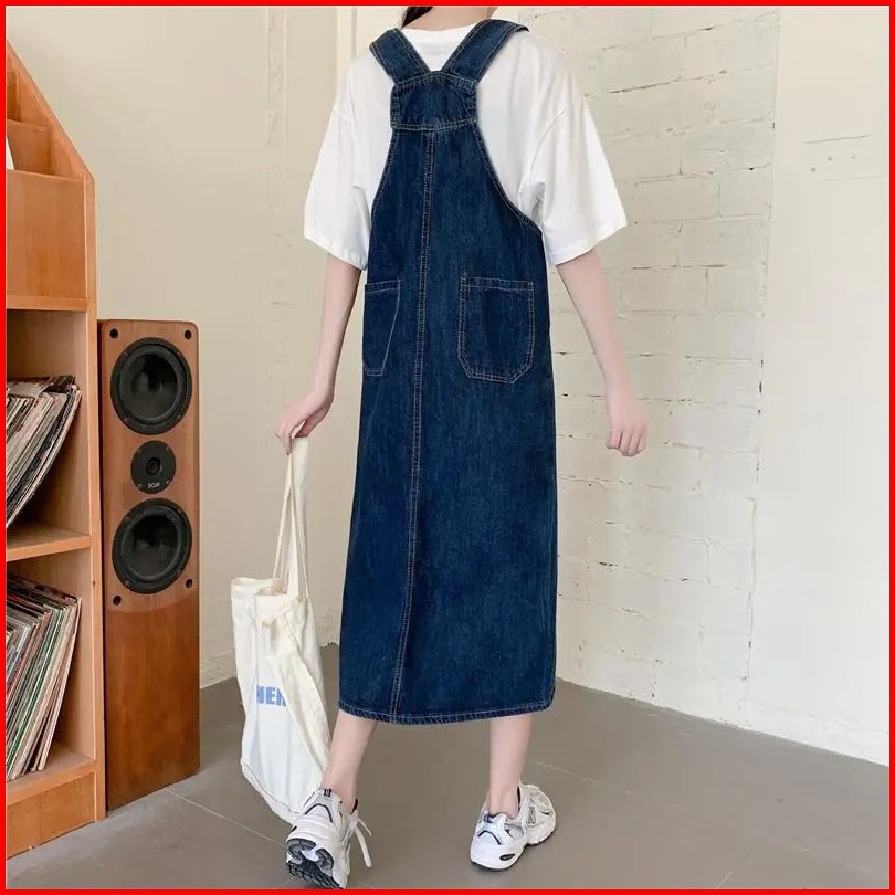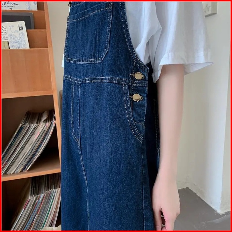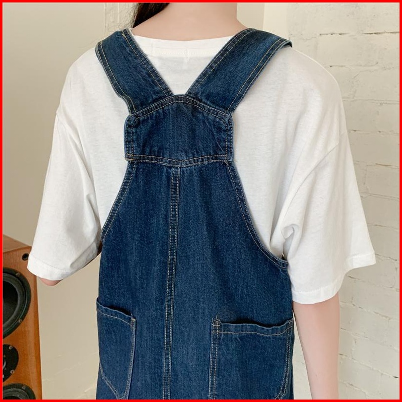 Rok Suspender Denim Rok Jumpsuit Overall Suspender Mid-length Kasual Longgar Jumpsuit Wanita Playsuit