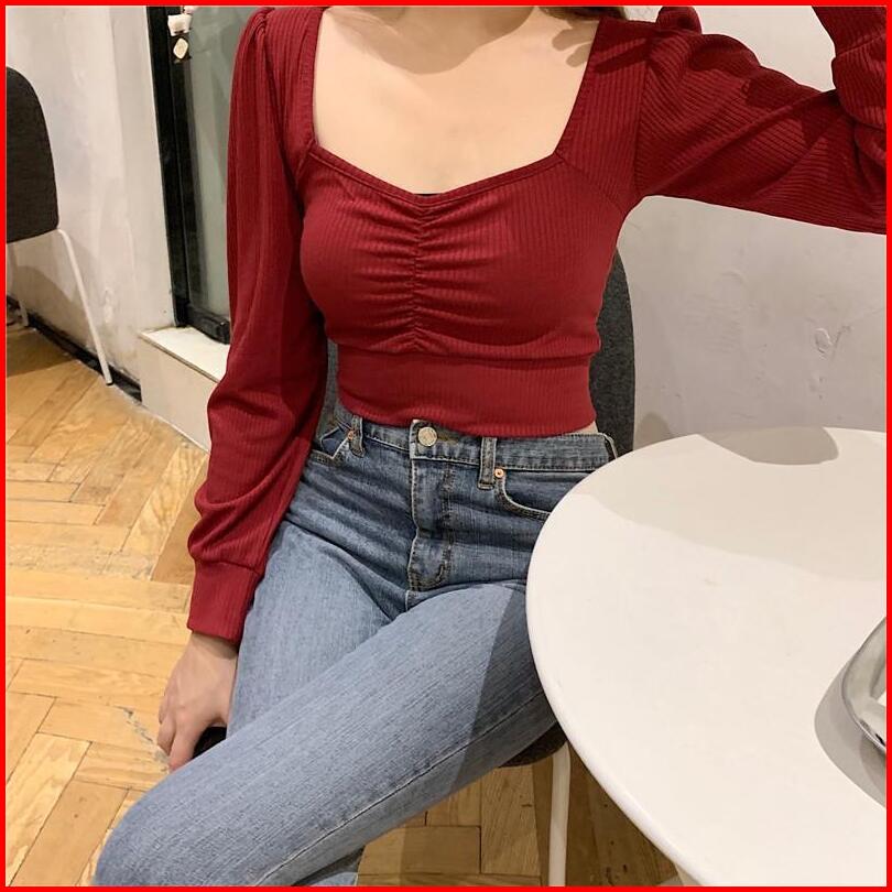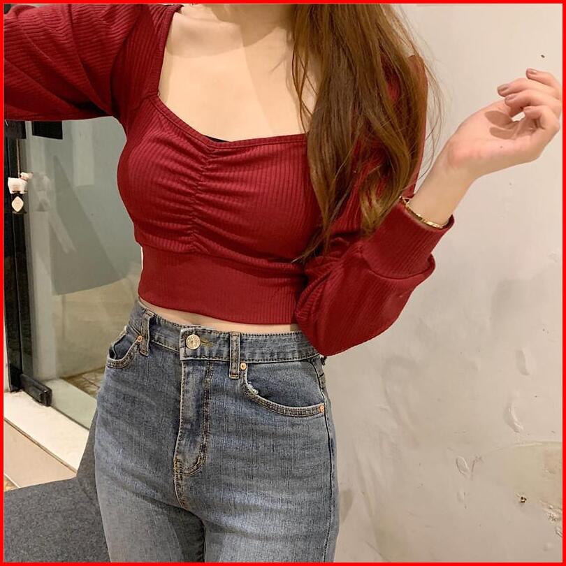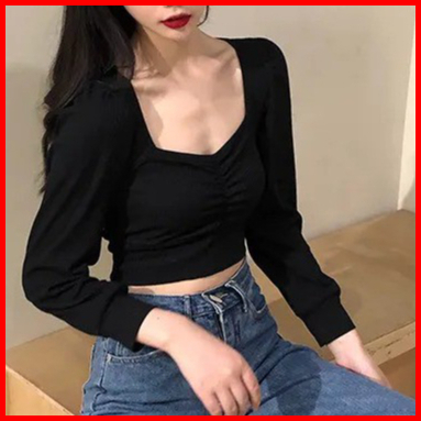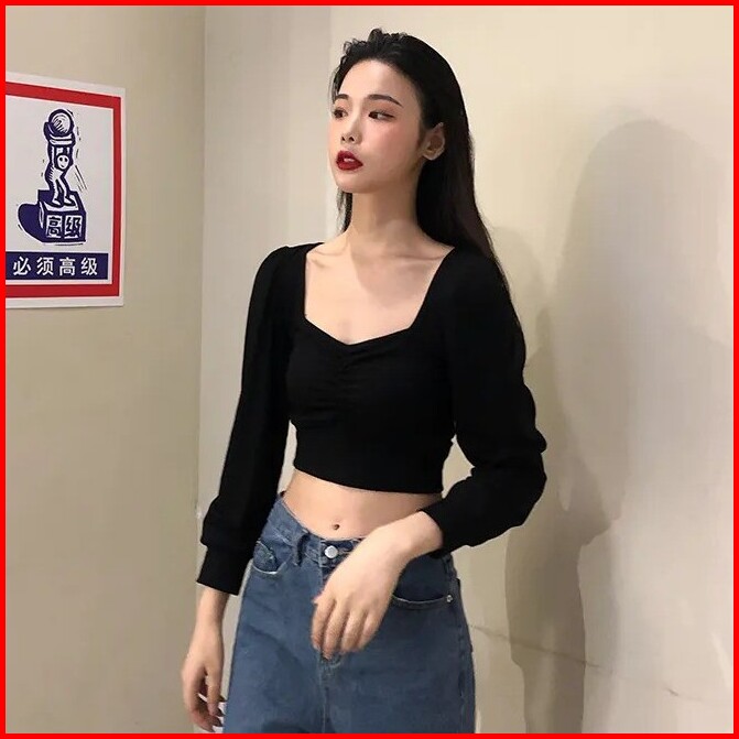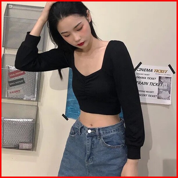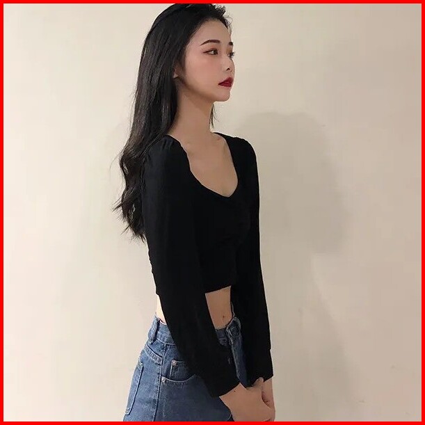 Long Sleeve Crop Top Blouse Women 1186 S M L Xl