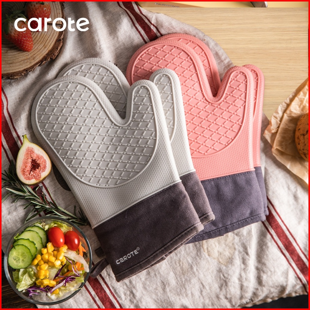Carote Sarung Tangan Tahan Panas Cocok Untuk Oven Microwave Anti Selip Silikon Tahan Lama Tahan Panas 86 F 300 C Abu-abu