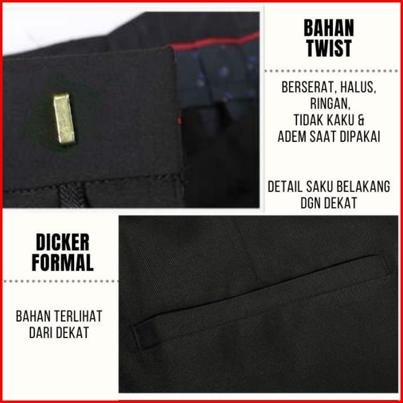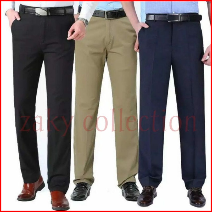 Celana Kerja Pria Zaky Formal Twiss Bahan Tebal Panjang Sopan Kondangan Model Cardinal Warna Abu Hitam Coklat Tua Navy C