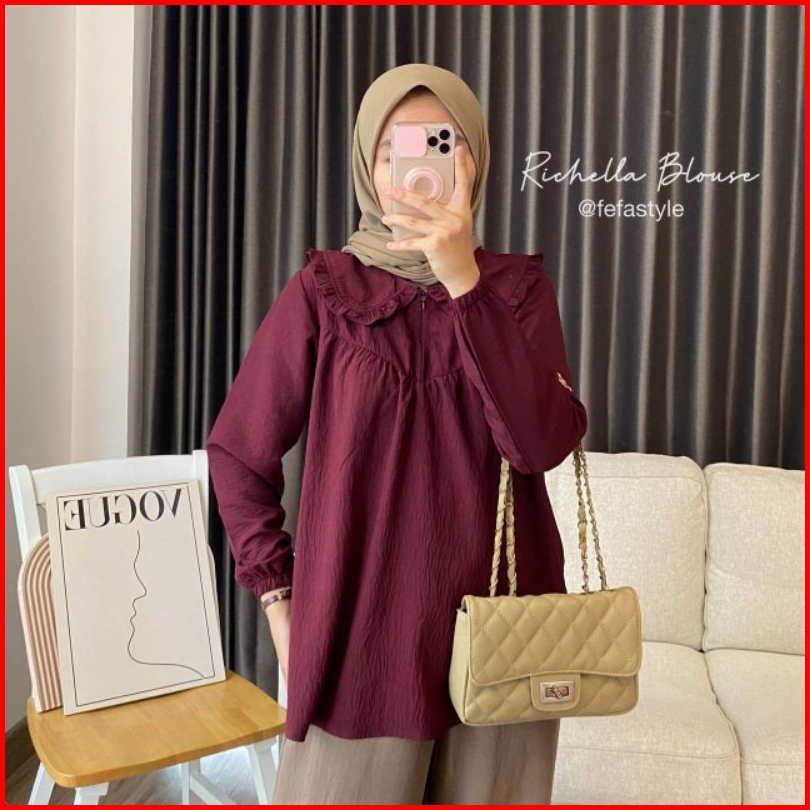 Fefa Style - Richella - Blouse Cantik Wanita Atasan Polos Blouse Kekinian