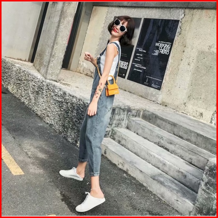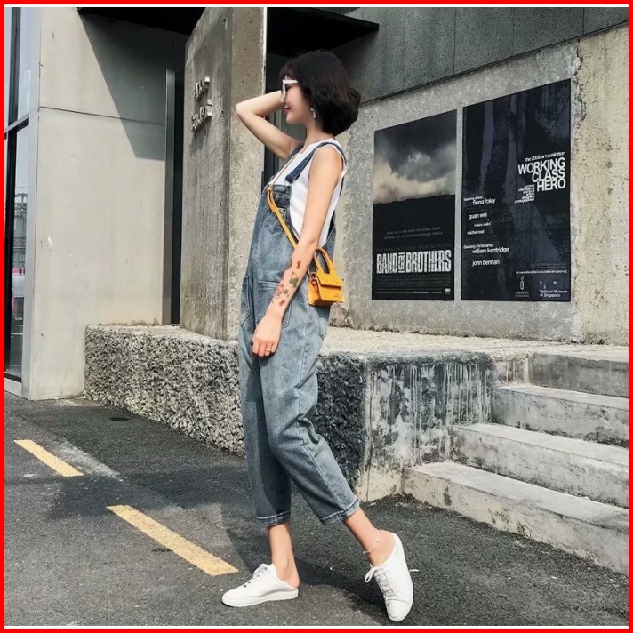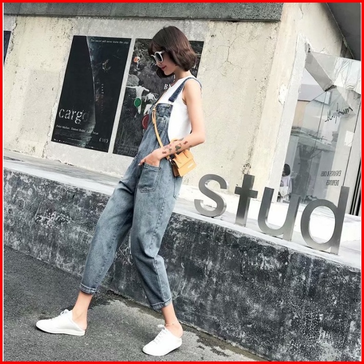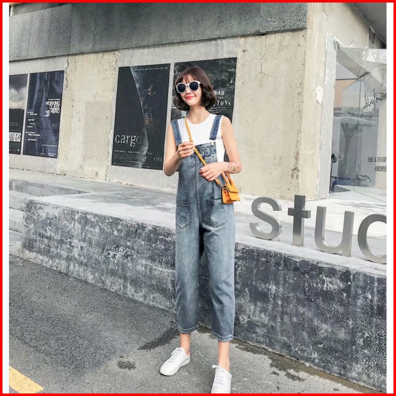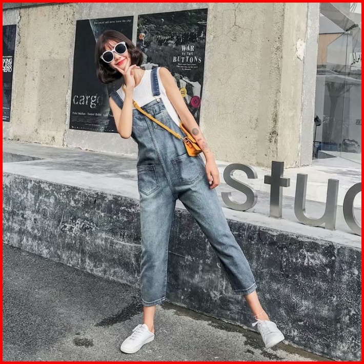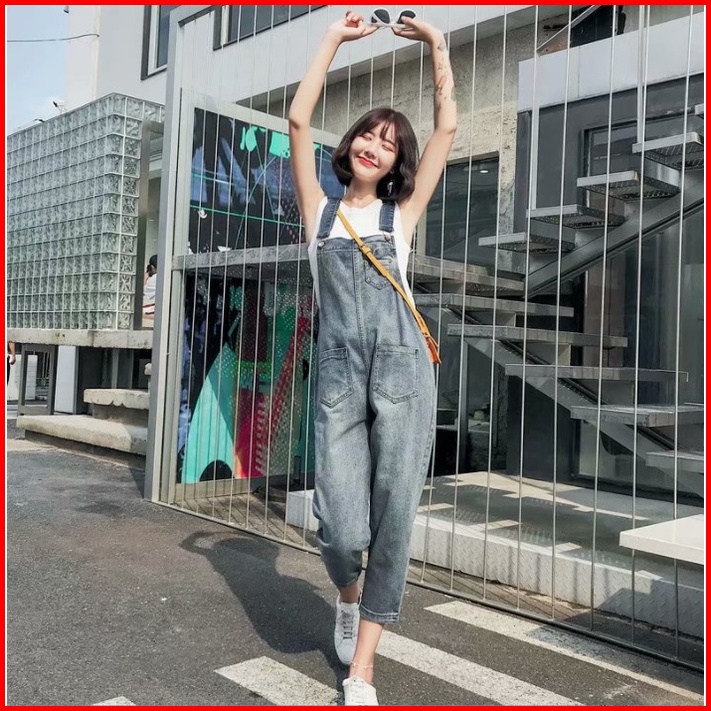 Overall Denim Panjang Jumpsuit Celana Panjang Jumpsuit Wanita Fashion Simple Lucu Jumpsuit Longgar Versi Korea Wanita Ko