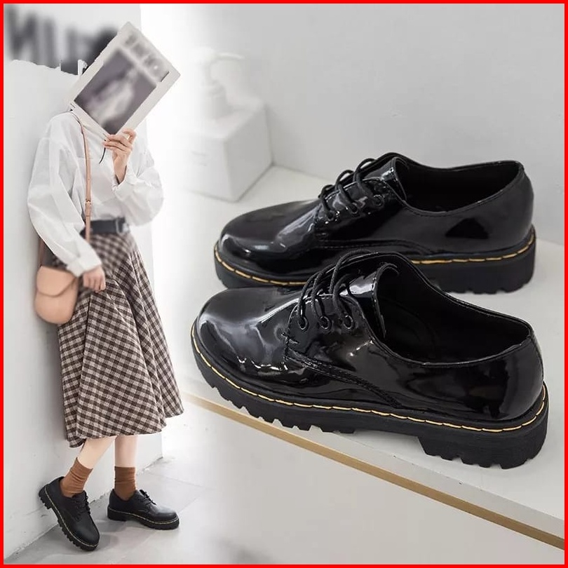 Sepatu Oxford Glosy And Dof Tali Jahit Wanita Sepatu Flat Loafers Premium Jht 01