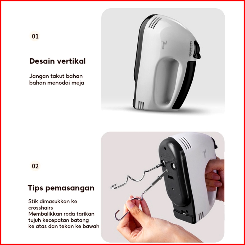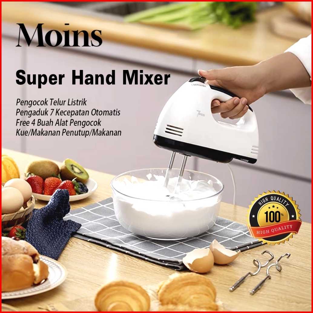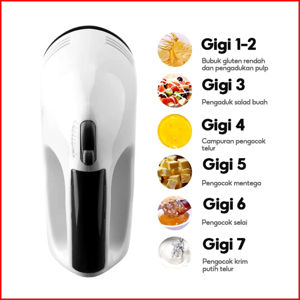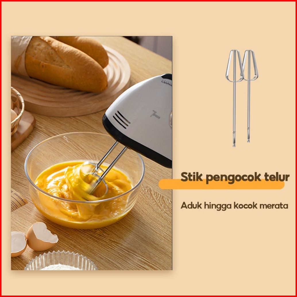 Mixer Super Hand Mixer Pengaduk 7 Kecepatan Otomatis Kocokan Adonan Telur Free 4 Buah Alat Pengocok