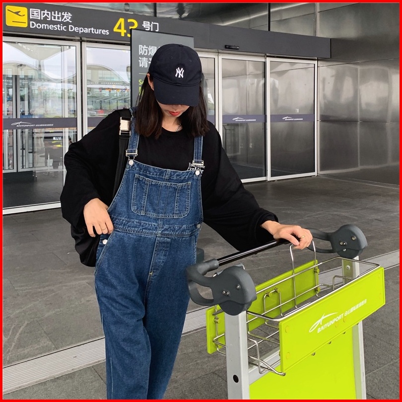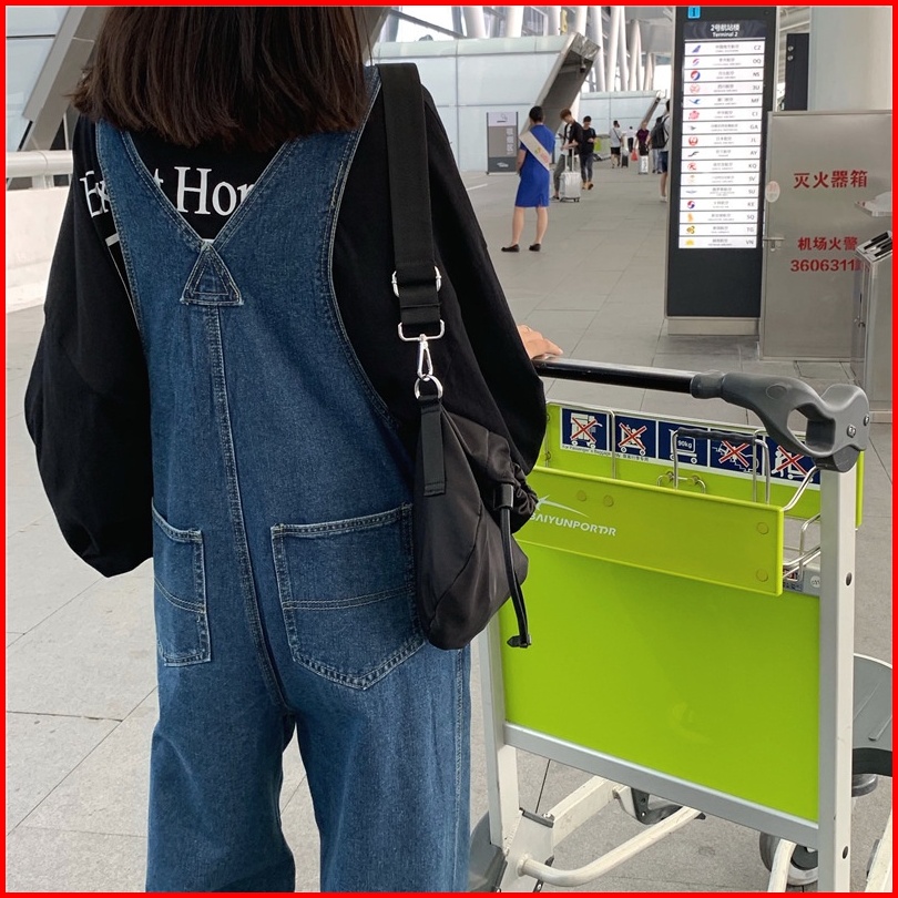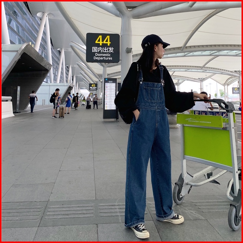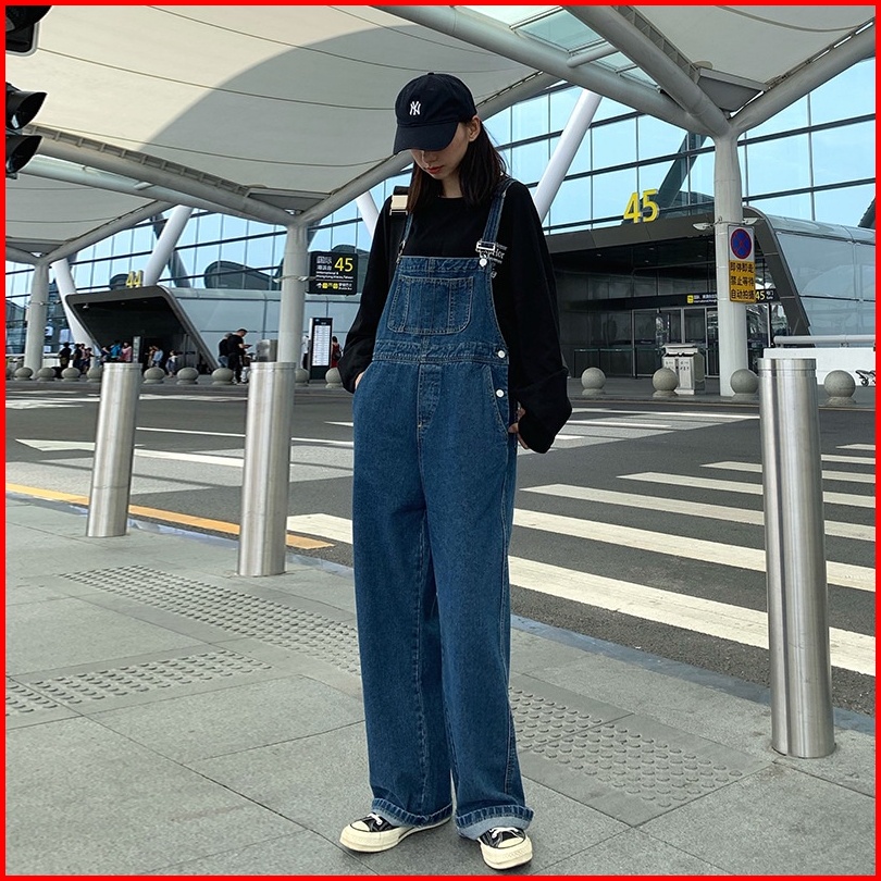 Jumpsuit Longgar Jumpsuit Denim Pakaia Kodok Overall Tali Ikat Celana Wanita Celana Pelangsing Jumpsuit High Pinggang Le