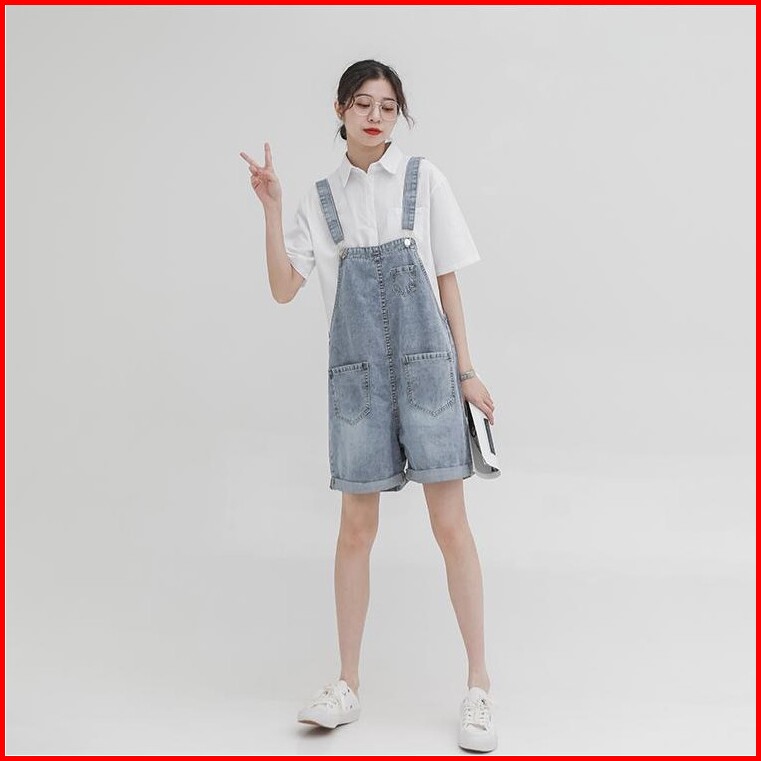 Jeans Overall Pendek Jumsuit Fashion Wanita Jeans Cewek Koboi Korean Style Denim