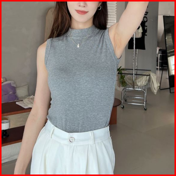 Turtle Neck Sleeveless Top T-shirt 1010 S M L Xl