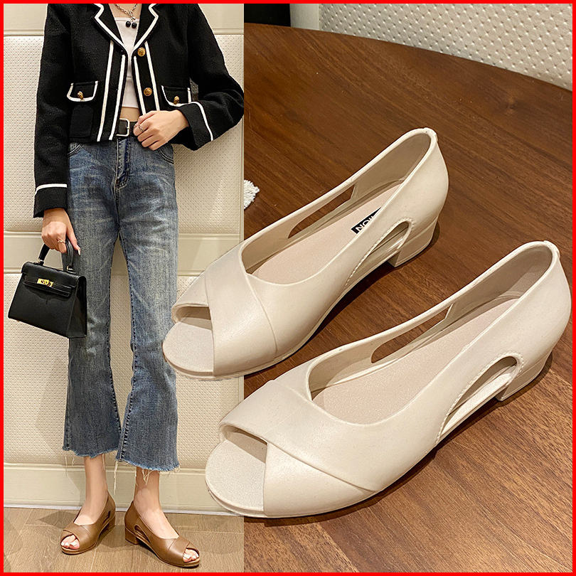 Cys Sepatu Flatshoes Wanita Model Hak Rendah Polos Slip On Korea Casual Jelly Spt 61
