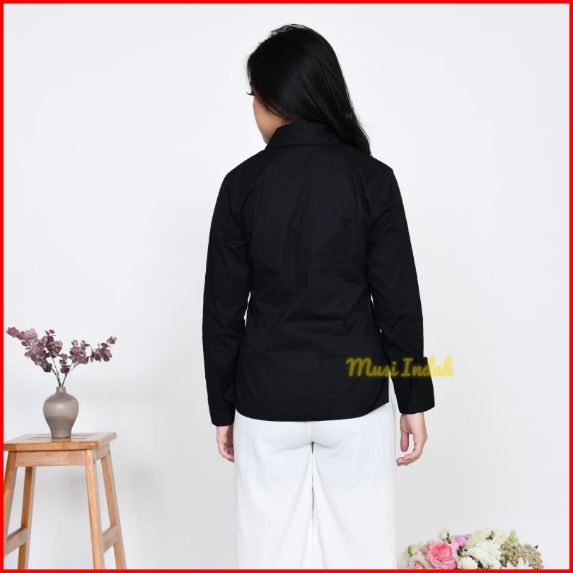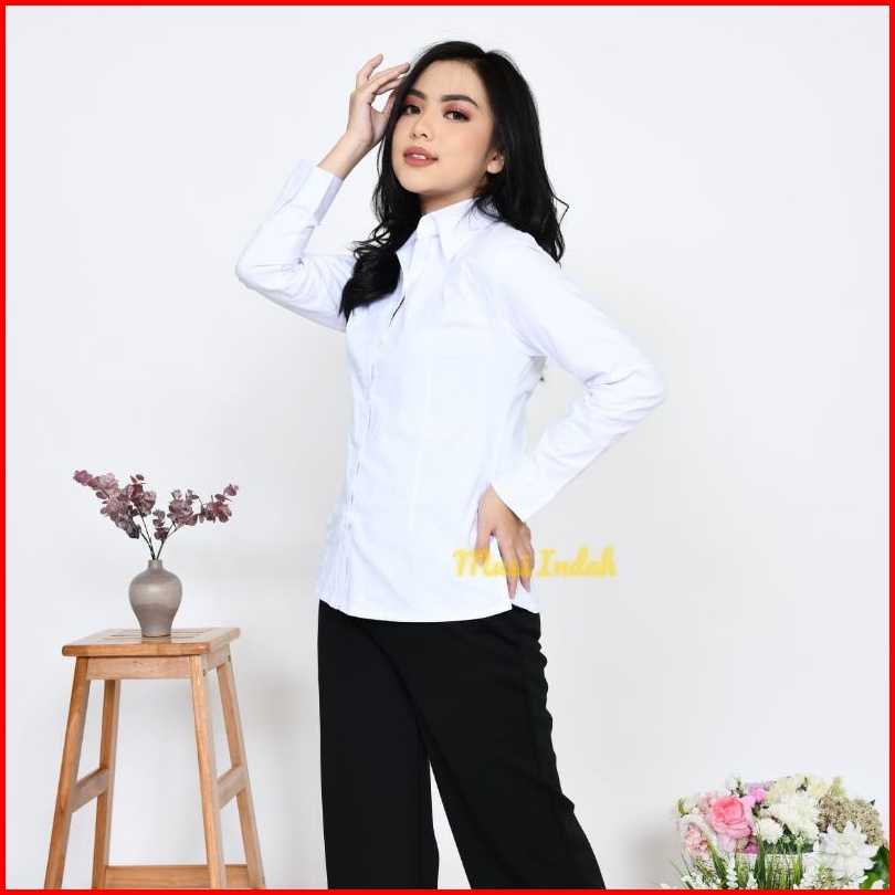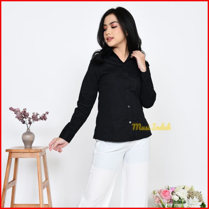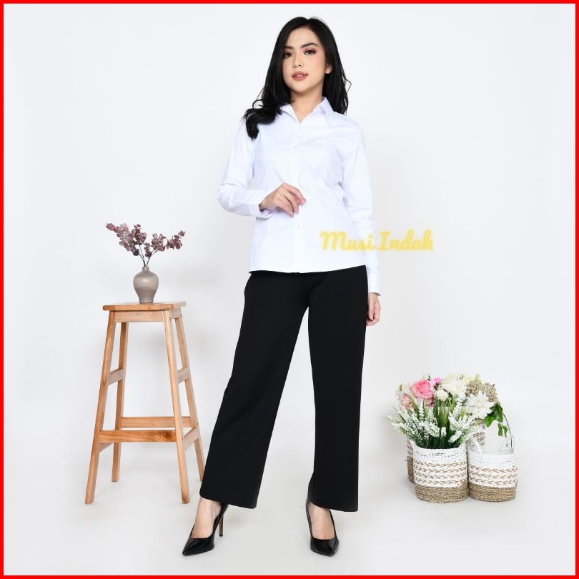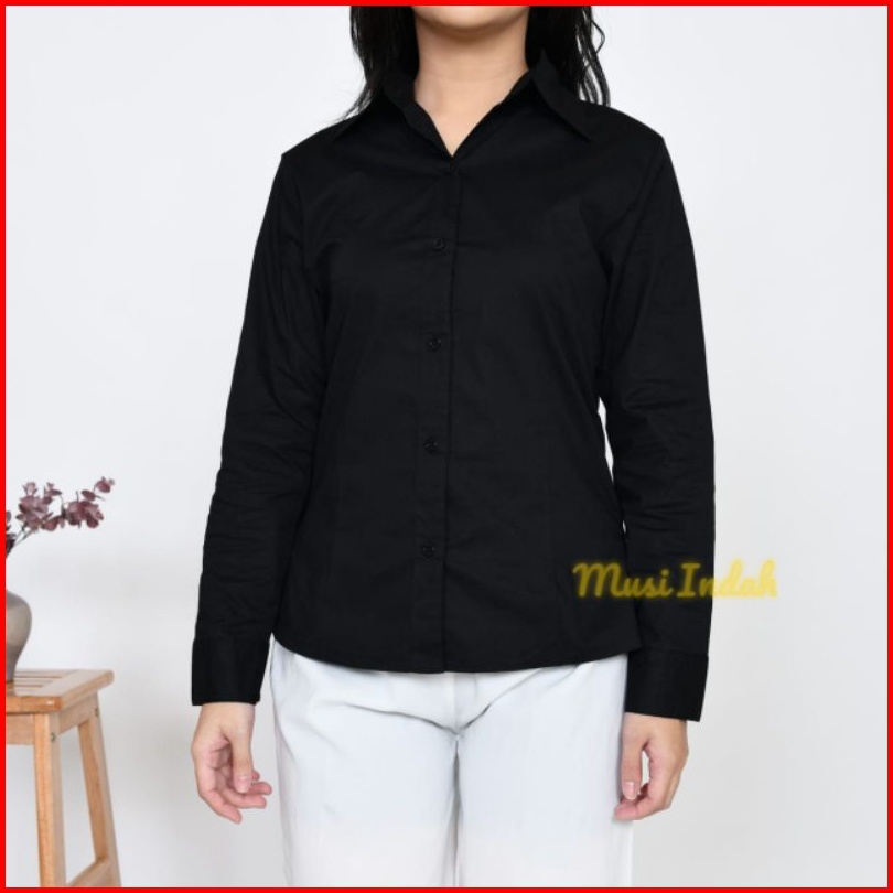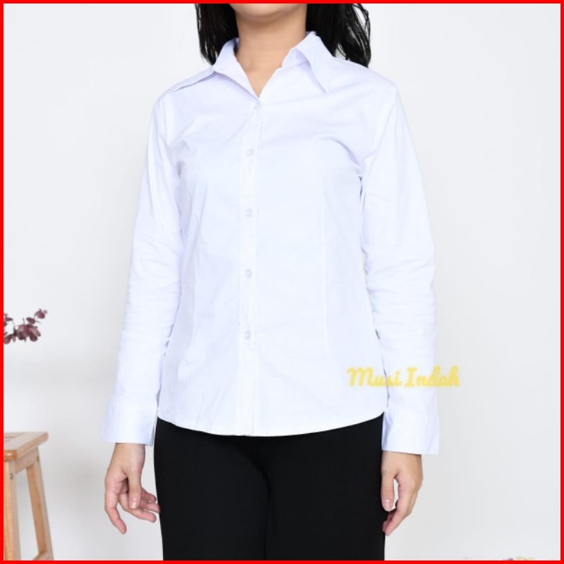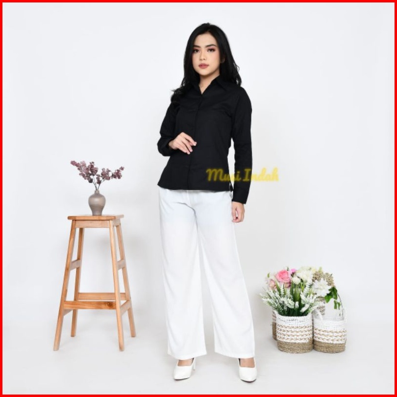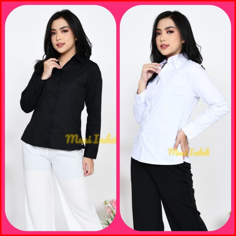 Kameja Putih Hitam Kerja Wanita Kantor Formal Lengan Panjang