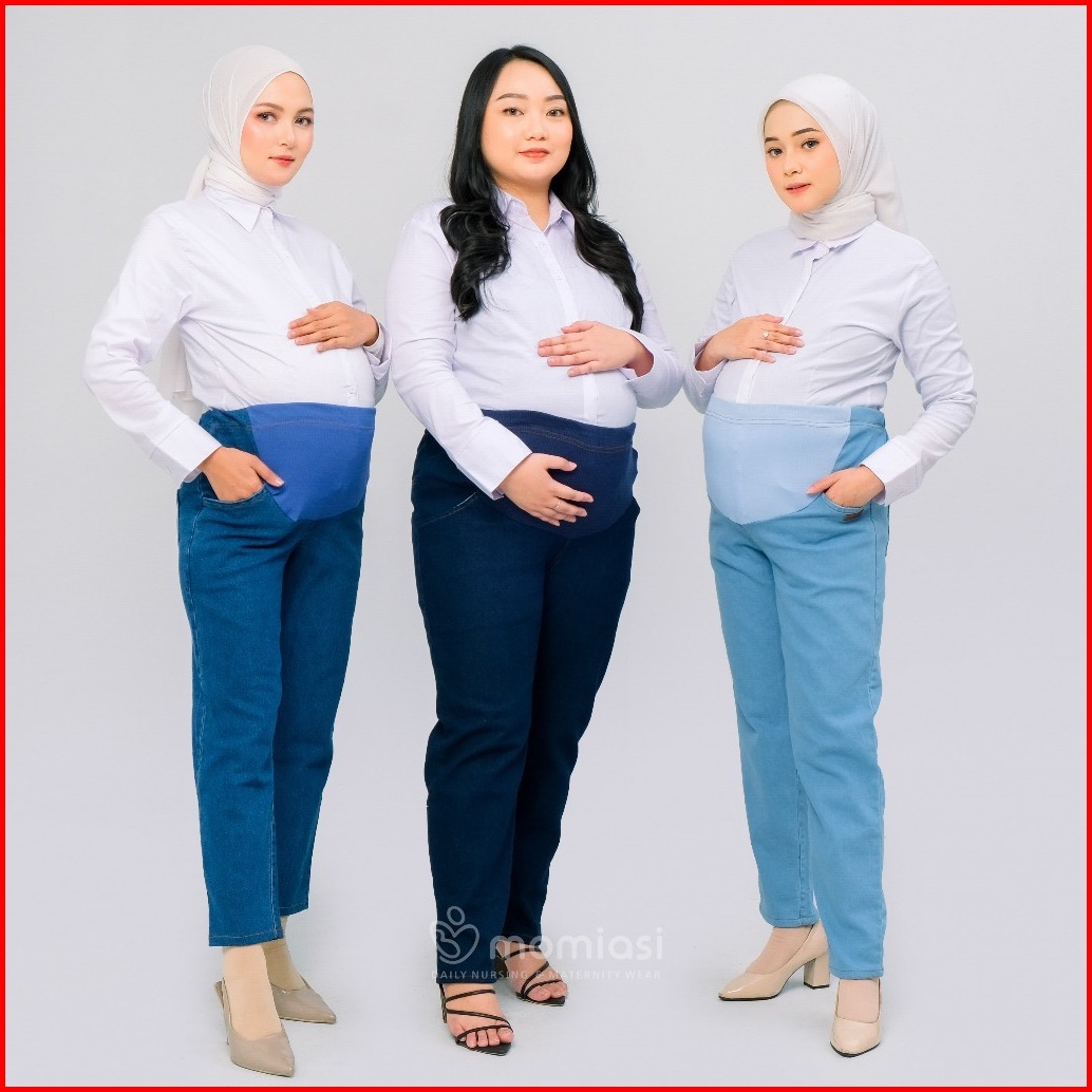 Momiasi - Celana Hamil Jeans Denim Strech Jumbo Maternity Pants Office Fashion Wanita Bumil Premium