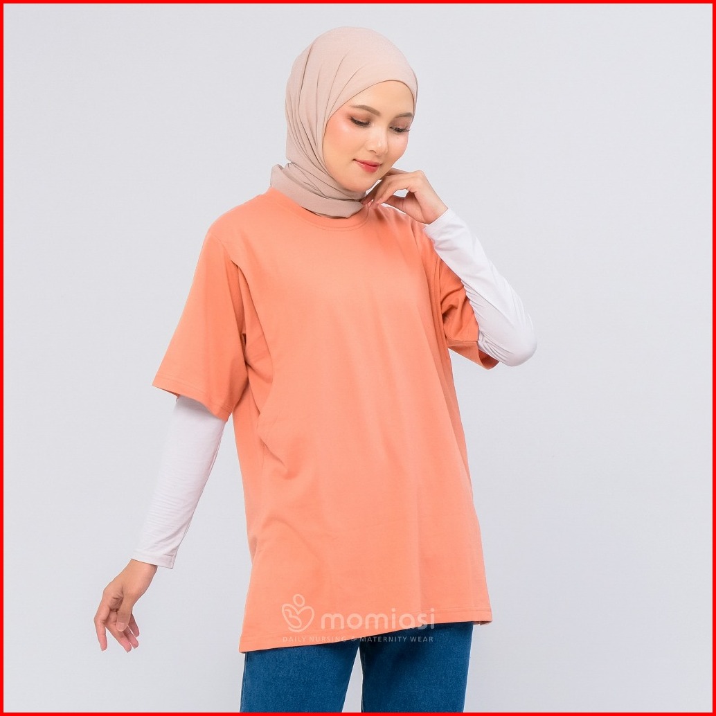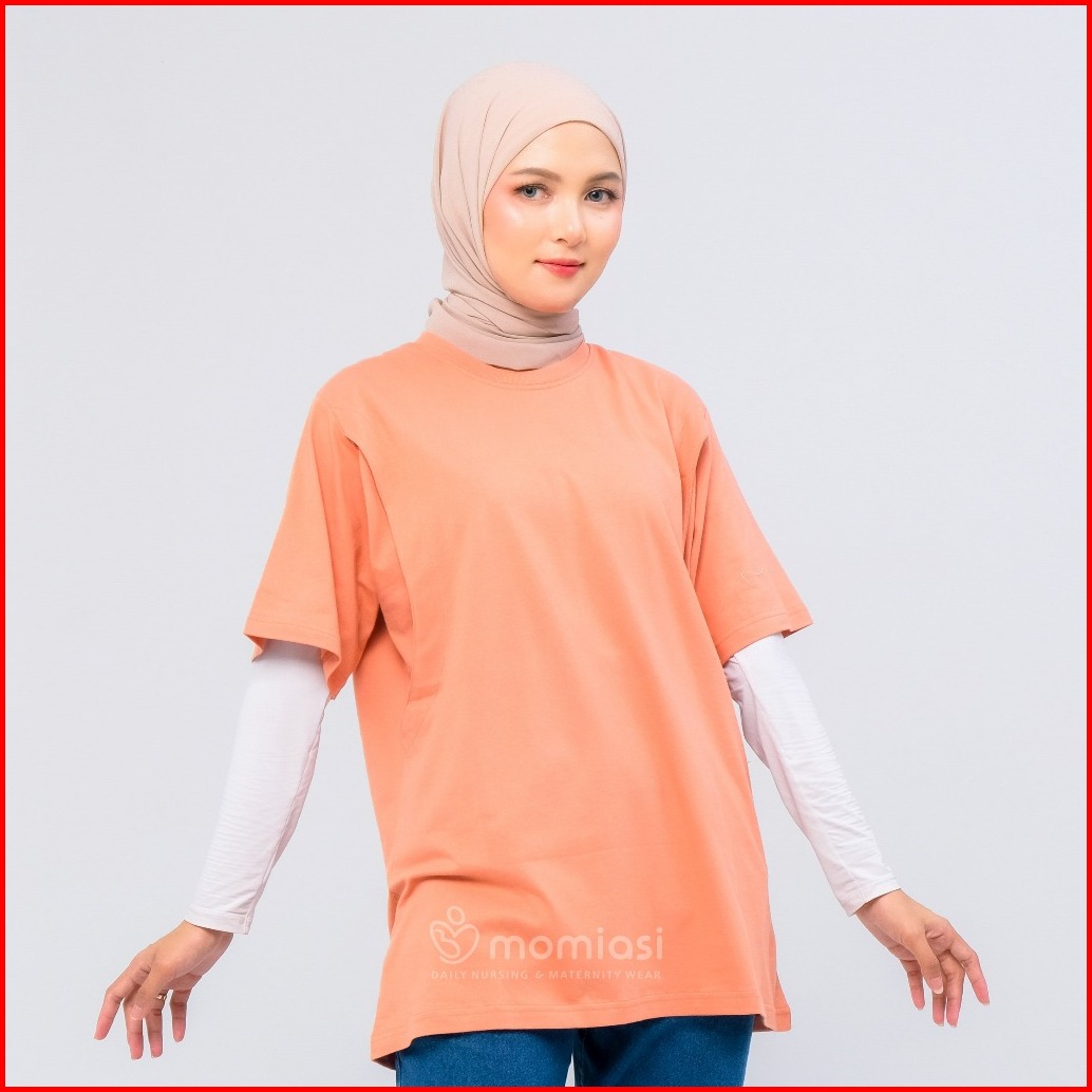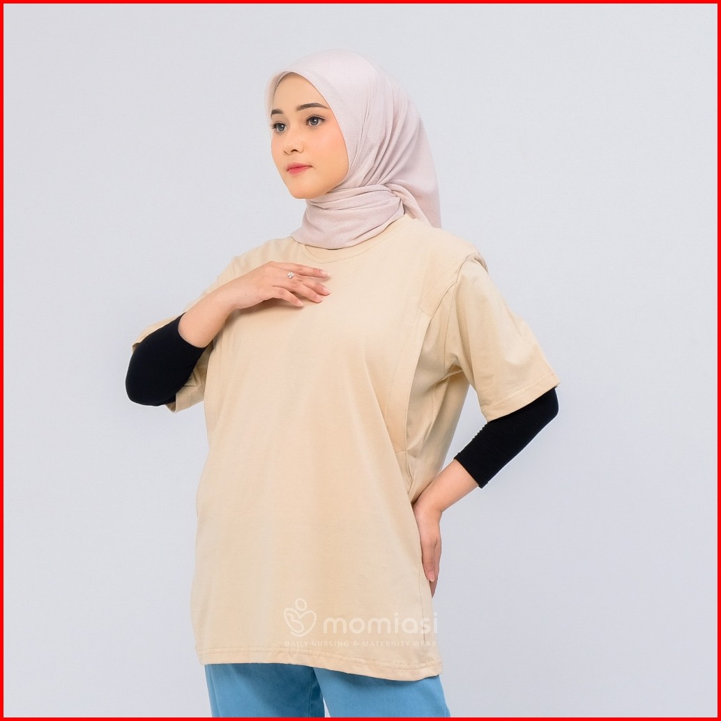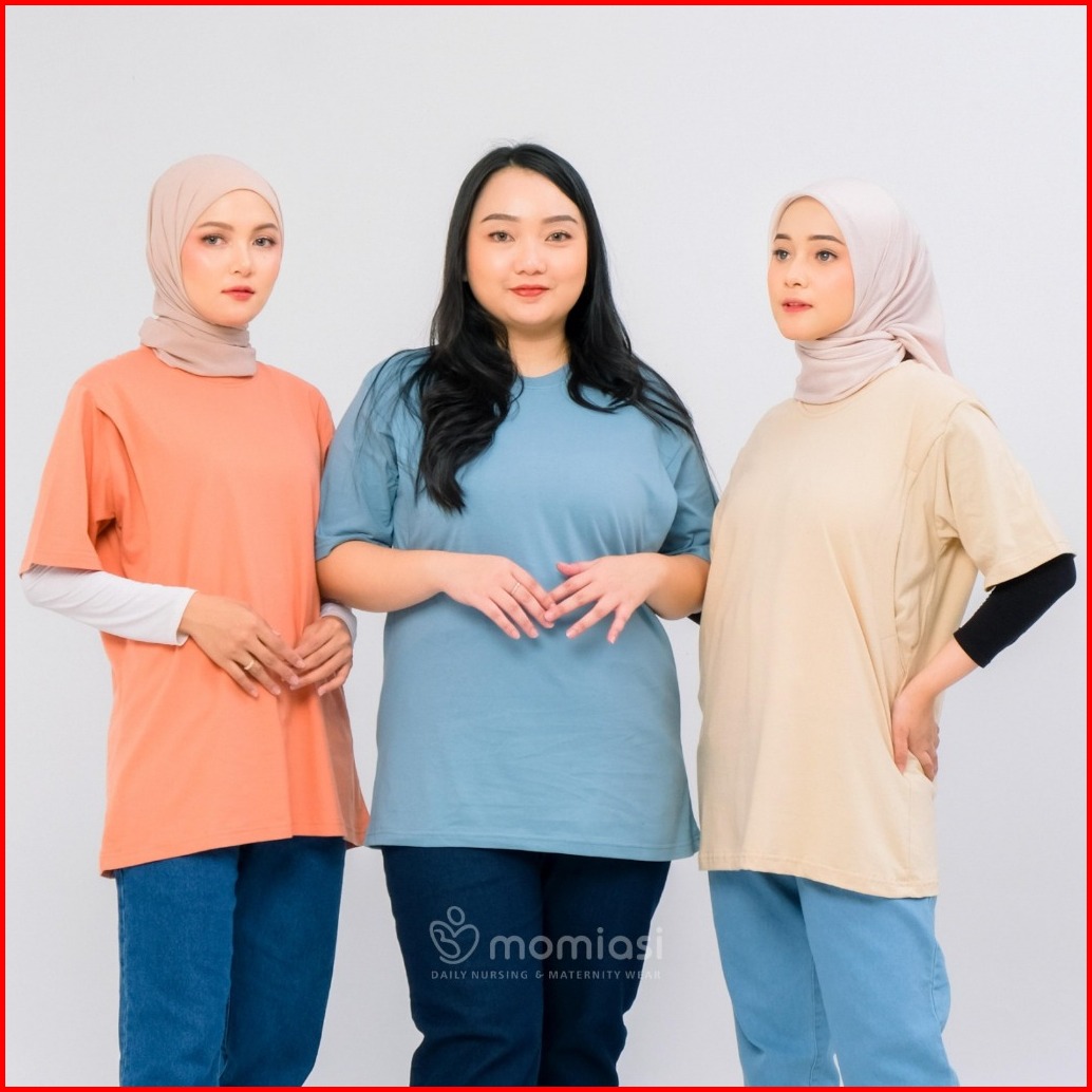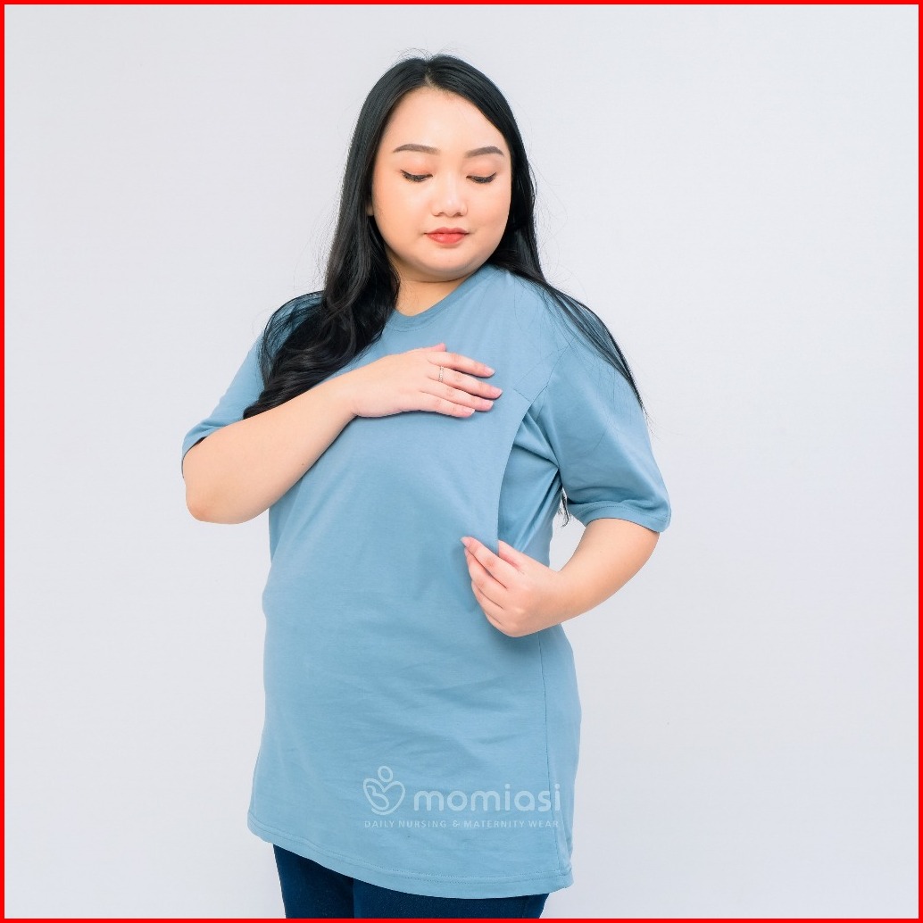 Momiasi - Baju Kaos Ibu Menyusui Wanita Busui Nursing Wear Lengan Pendek Jumbo Bukaan Belahan Samping Premium