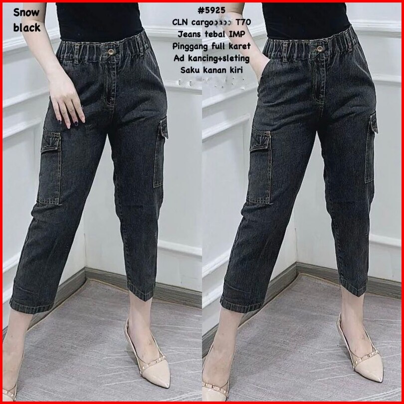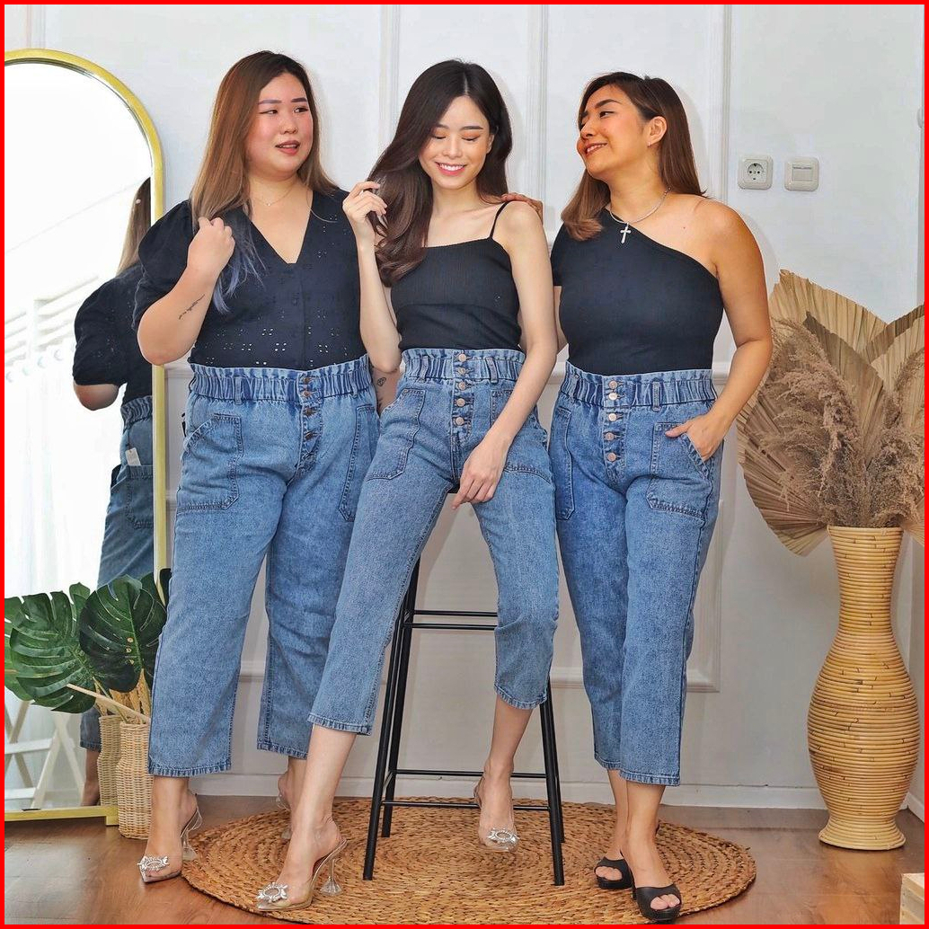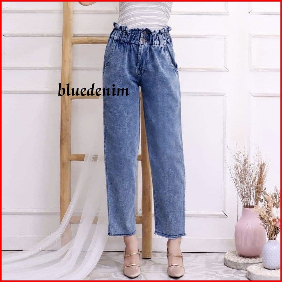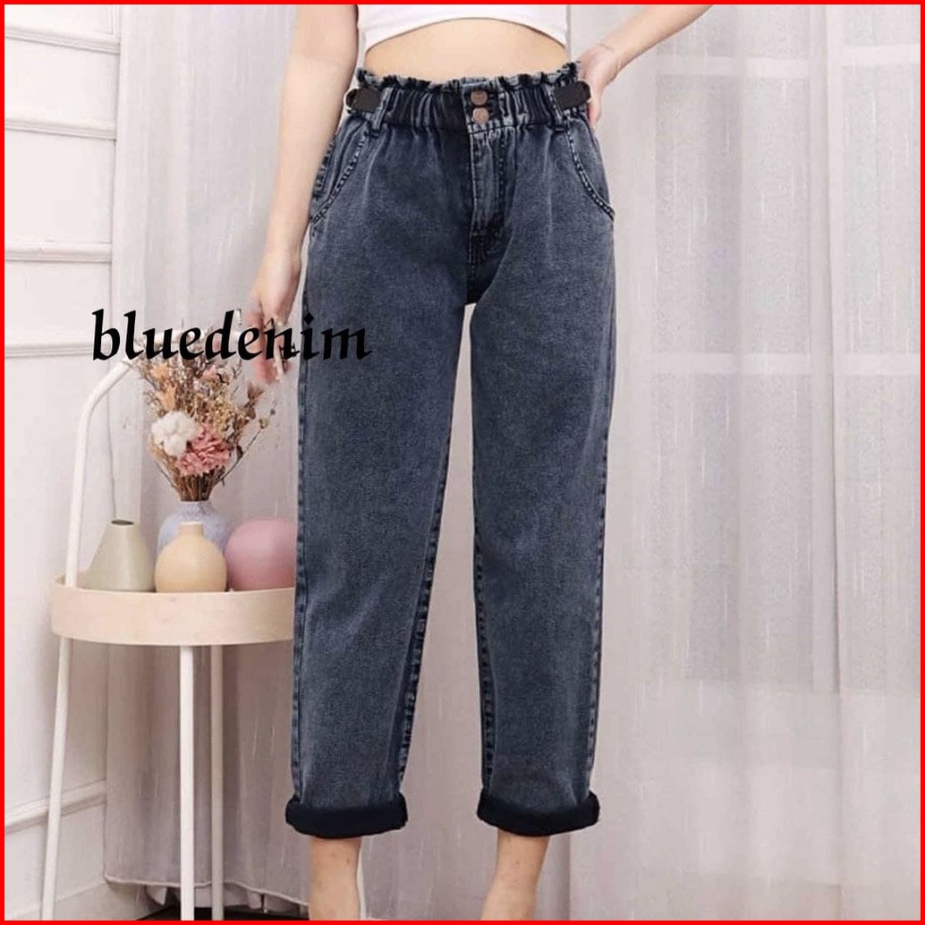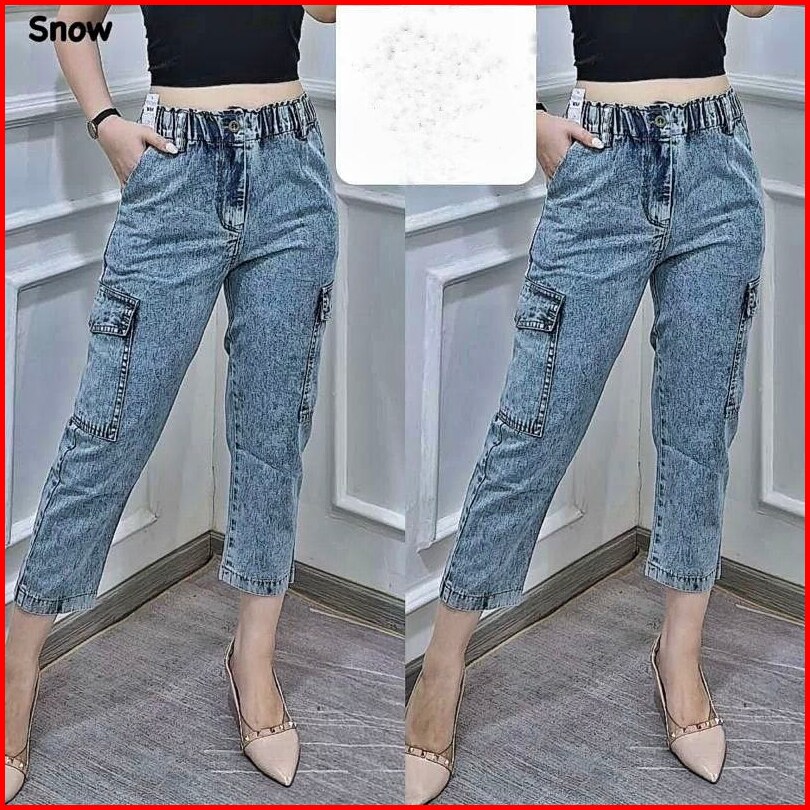 Boyfreind Jeans Fashion Snow Jumbo Celana Jeans Pinggang Karet