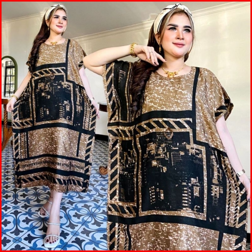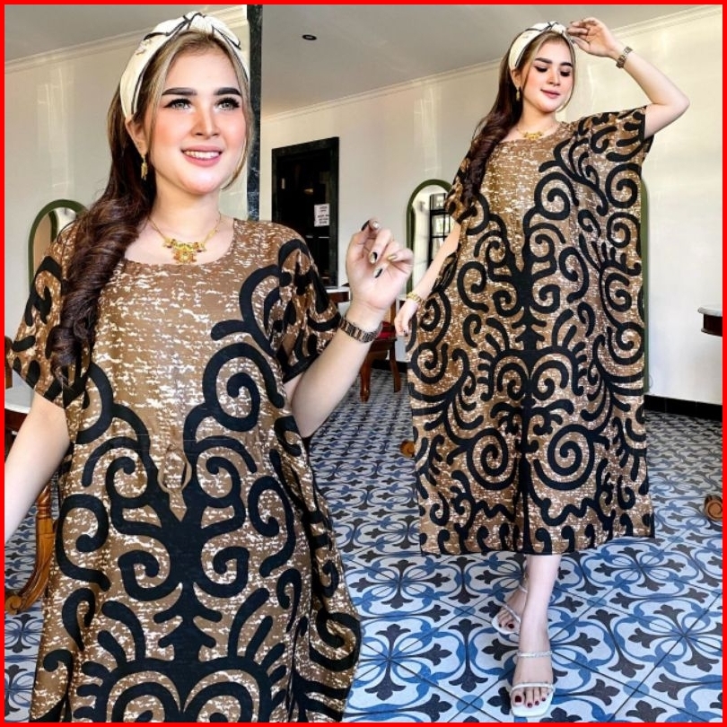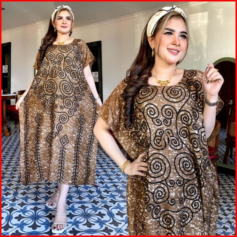 Daster Lowo Brownis Jumbo Tali Serut Resleting Depan Dress Wanita Bahan Rayon Grade A Aman Nyaman Dipakai Sepanjang Hari